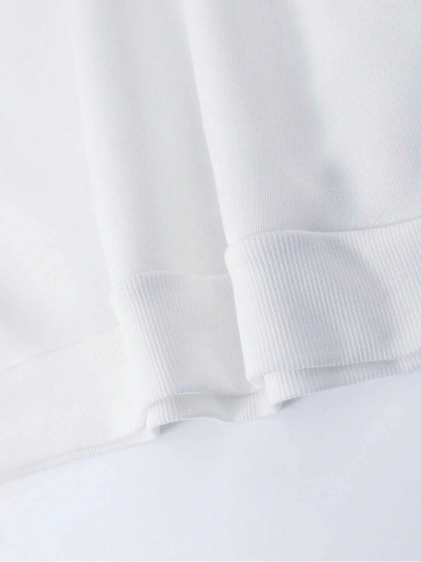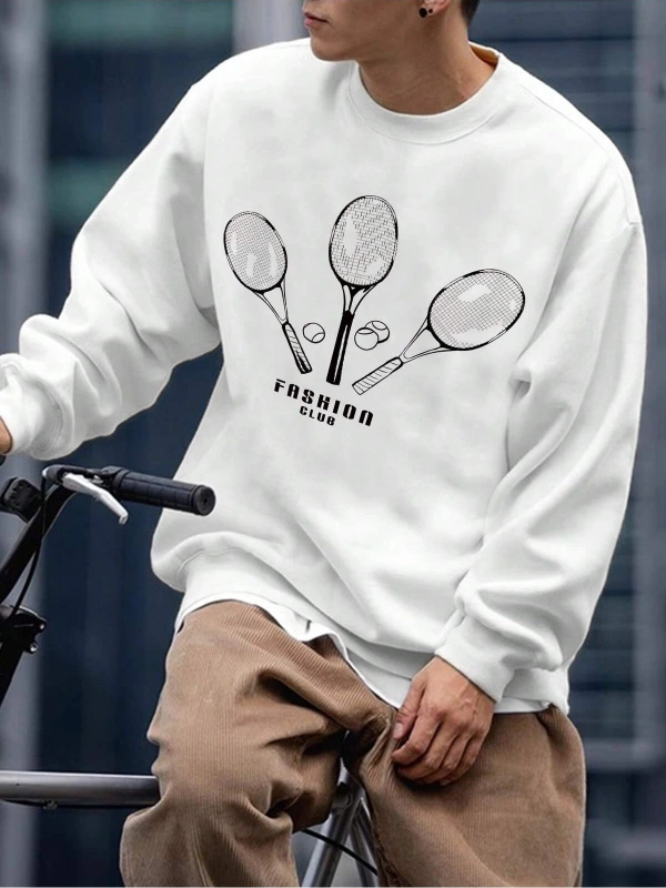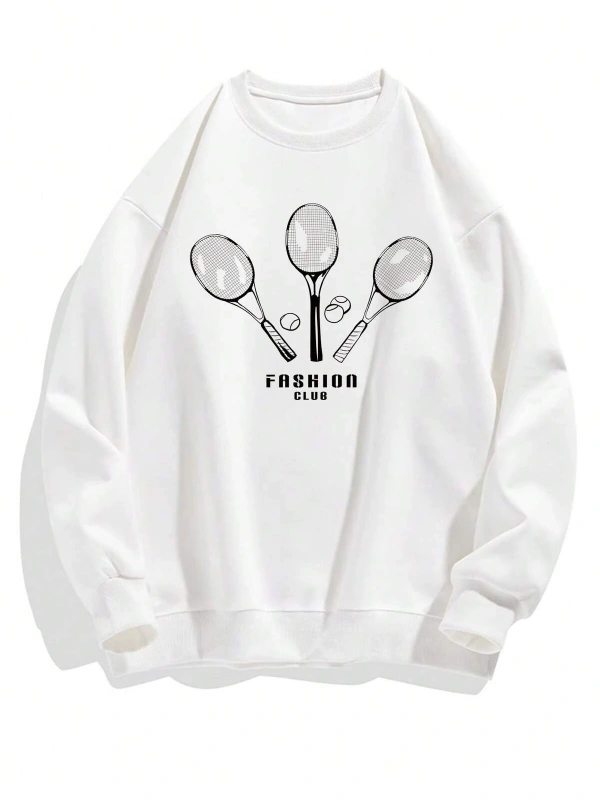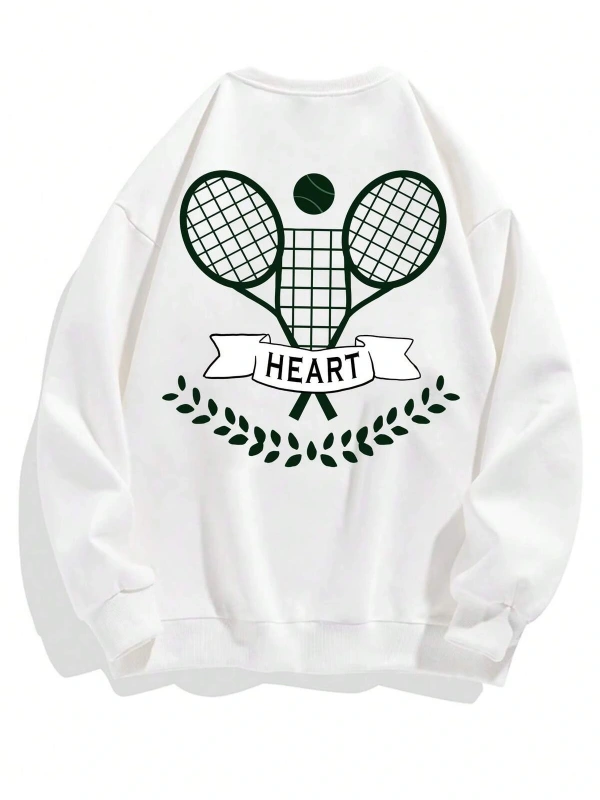 Letter & Tennis Racket Print Drop Shoulder Sweatshirt Beyaz