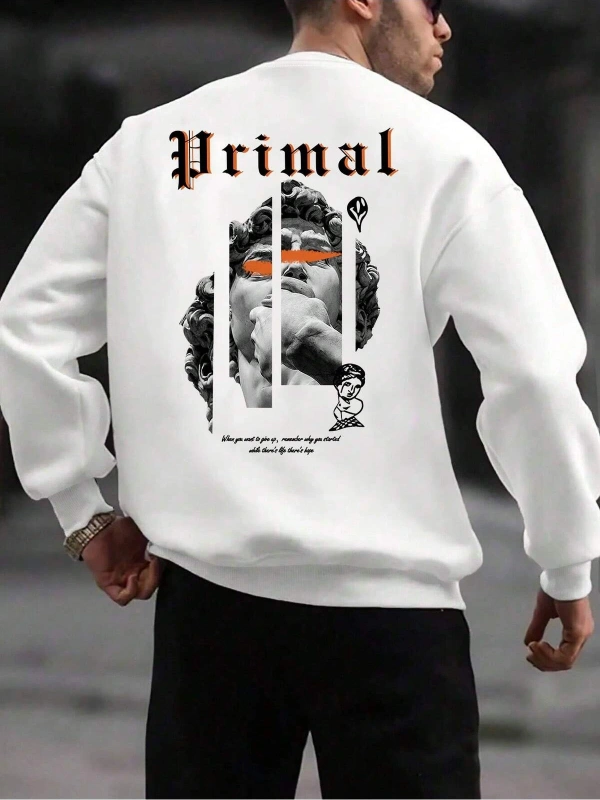 Manfinity Hypemode Slogan & Sculpture Print Pullover Beyaz