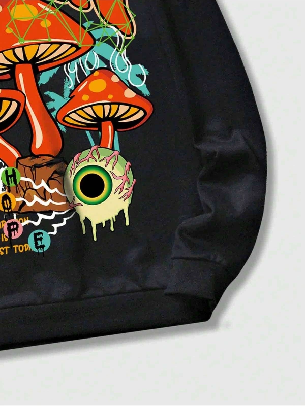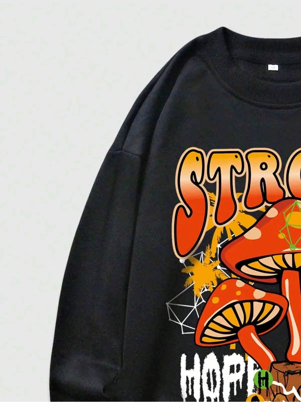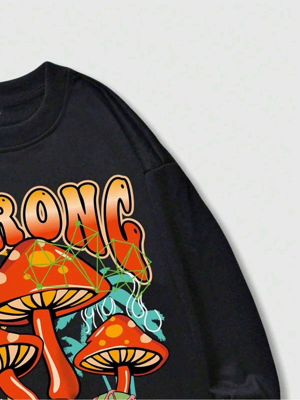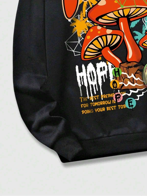ROMWE Street Life Guys Mushroom And Slogan Graphic Sweatshirt Siyah