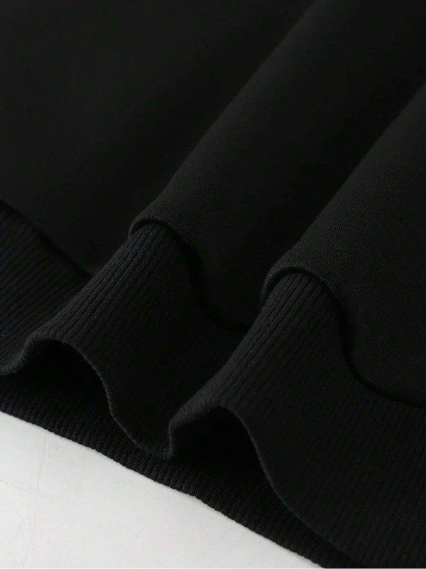 DAZY Letter Graphic Drop Shoulder Sweatshirt Siyah