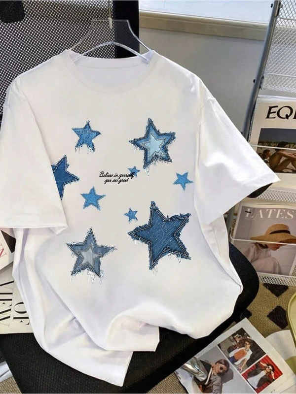 BEYAZ T SHIRT YILDIZ DESENLİ