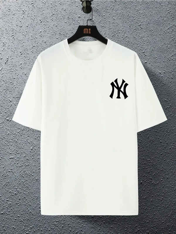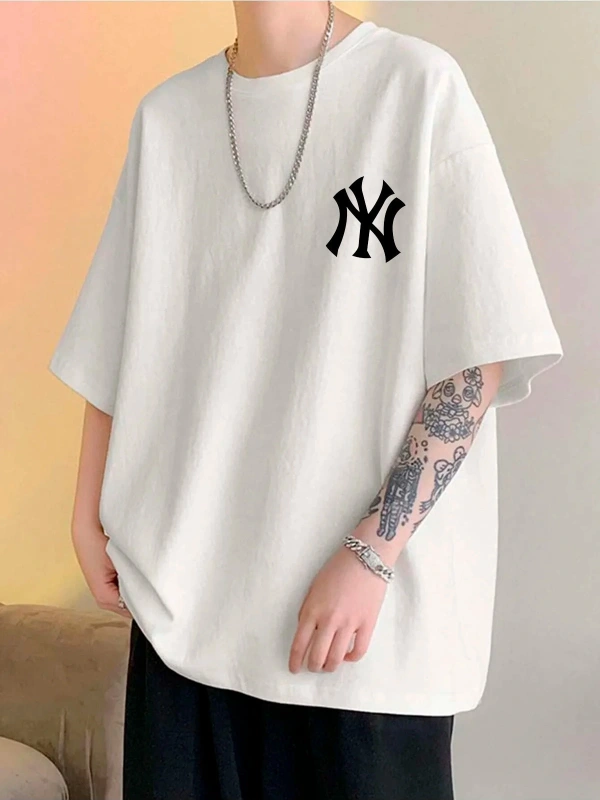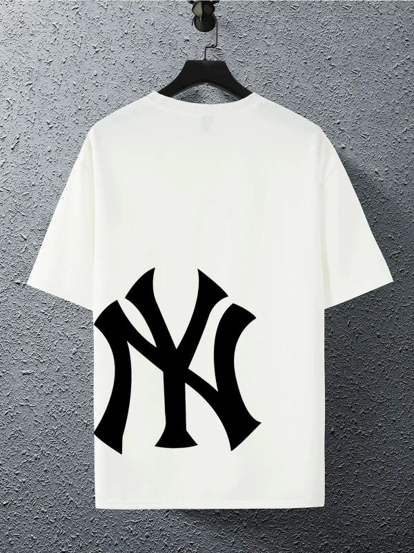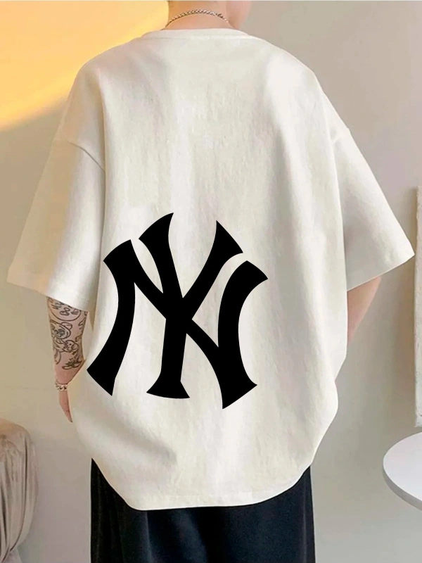 Unisex Yankees Özel Baskılı Oversize Penye Bisiklet Yaka T-Shirt