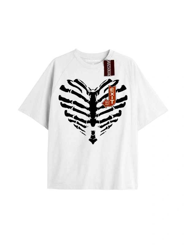 Unisex Erkek/kadın Kalp Kaburga T-shirt Siyah Kod 53