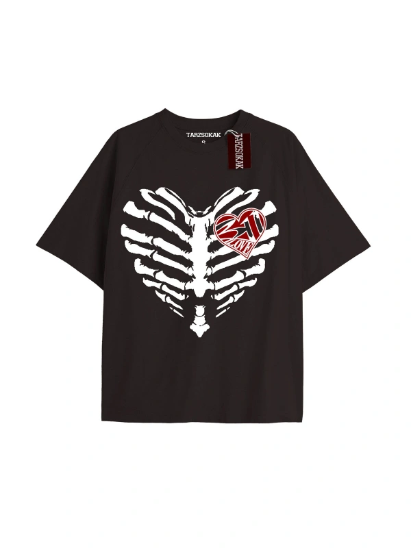 Unisex Erkek/kadın Kalp Kaburga T-shirt Siyah Kod 55