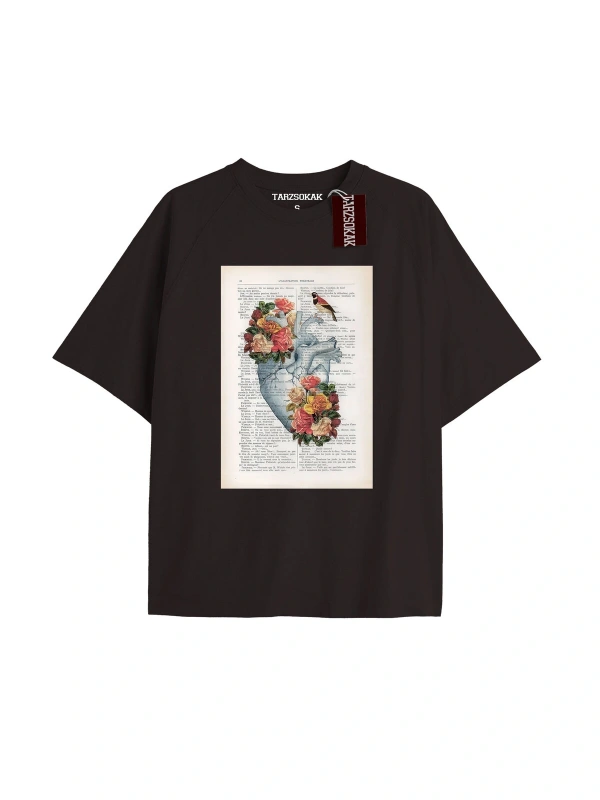 Unisex Erkek/kadın Kalp Kaburga T-shirt Siyah Kod 60