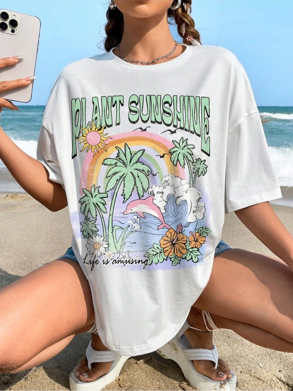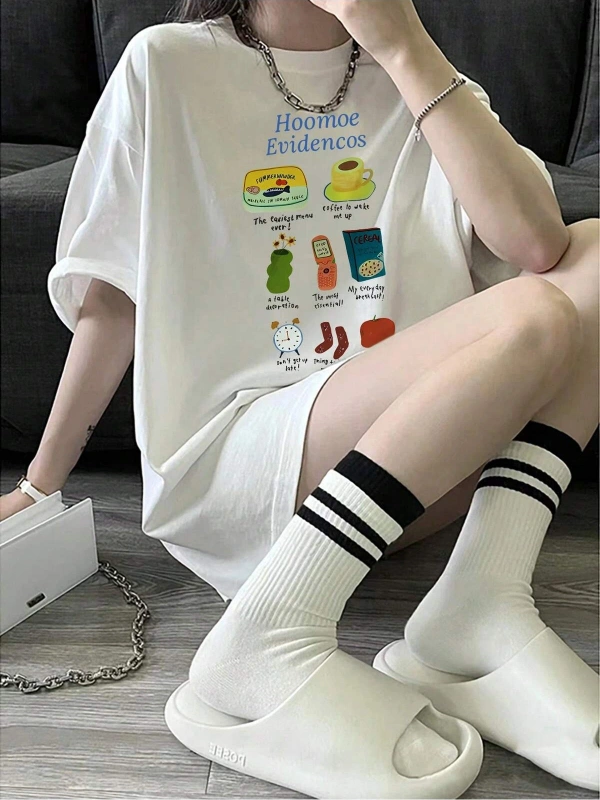 Karikatür ve Grafik tasarım Oversize T-shirt Cartoon/Letter serisi kod393