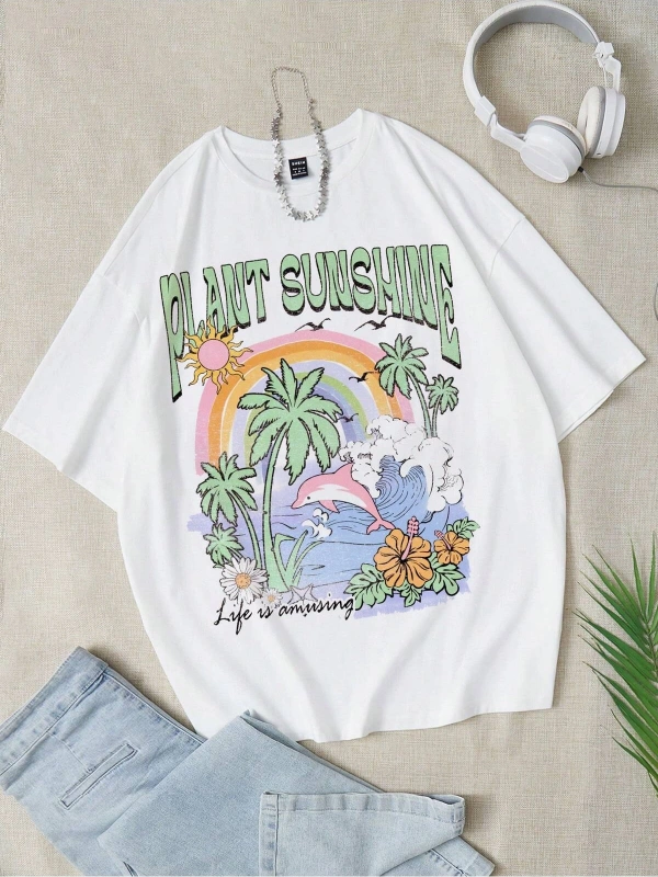 Karikatür ve Grafik tasarım Oversize T-shirt Cartoon/Letter serisi kod191