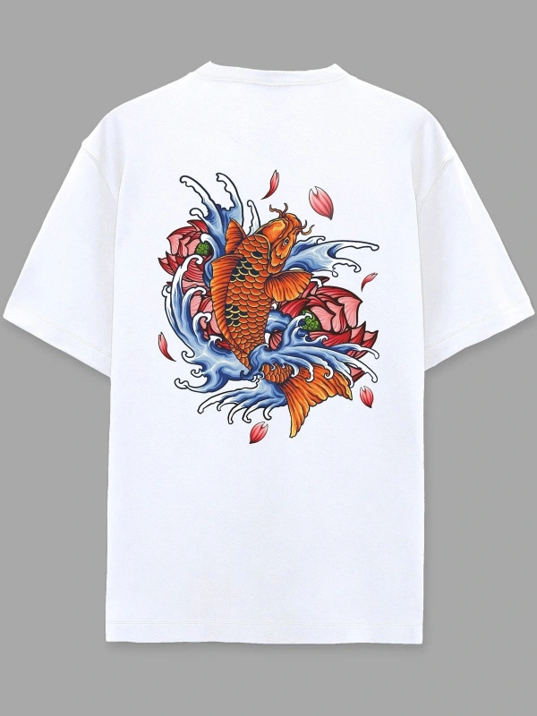 Japanese Fish Beyaz Oversize Unisex T-shirt