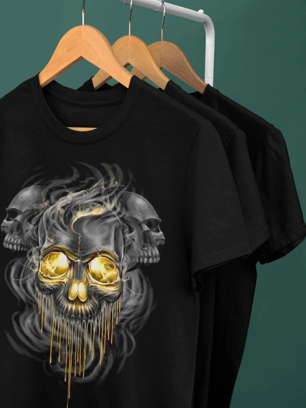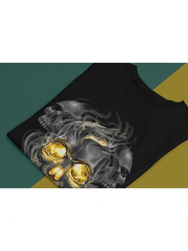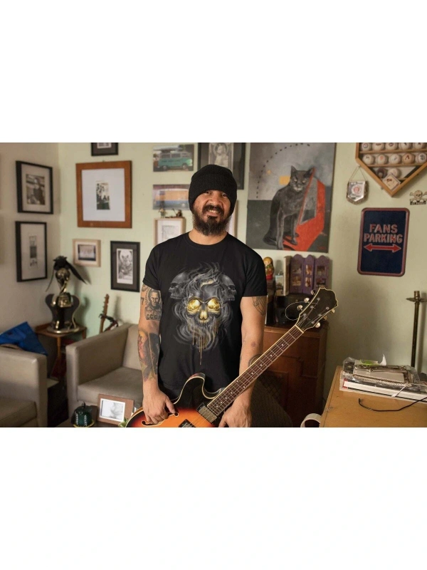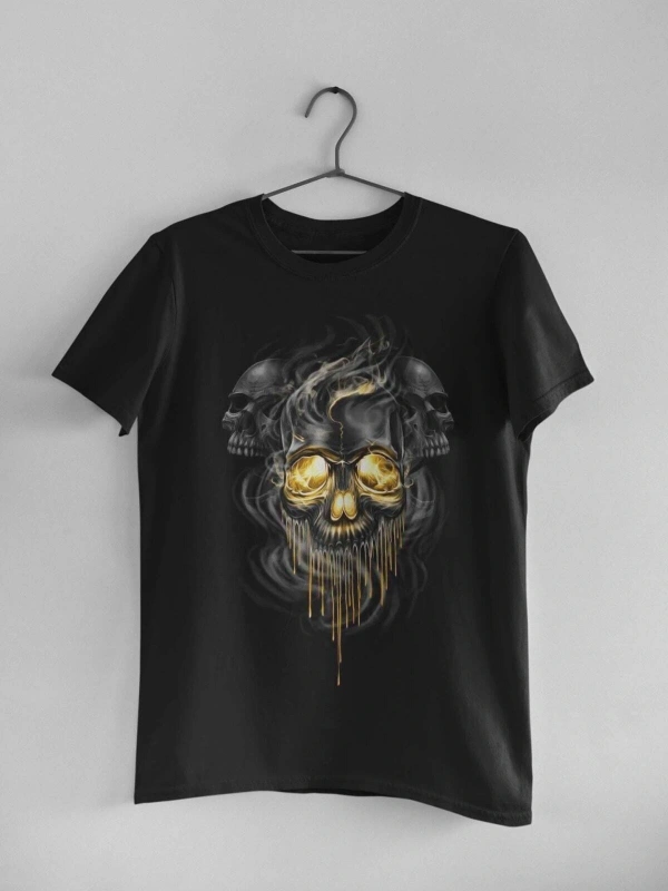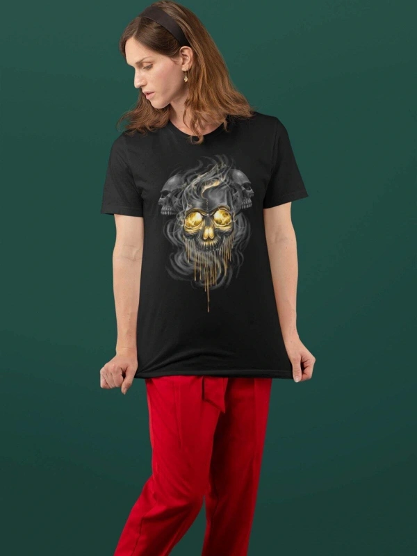 Wed Kuru Kafa Gold Görünüm Dead Gothic Rocker Dijital Baskılı T-shirt
