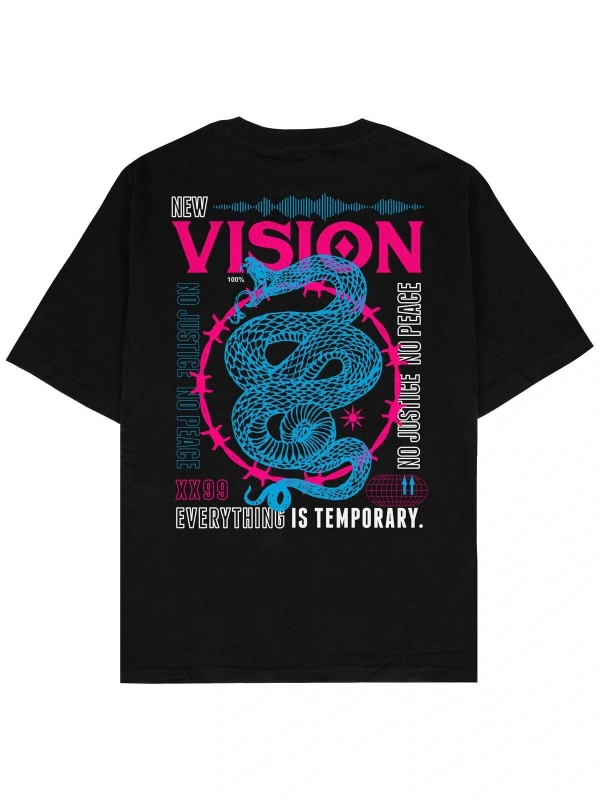 New Vision Siyah Oversize Unisex T-shirt