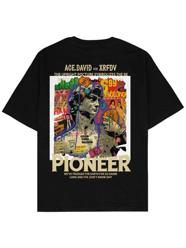 Pioneer Siyah Oversize Unisex T-shirt