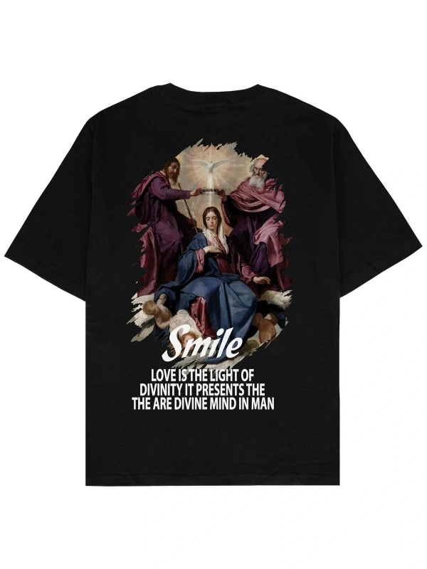 Smile Siyah Oversize Unisex T-shirt