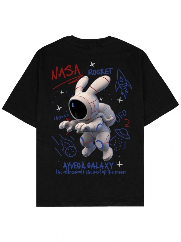 Space Bunny Siyah Oversize Unisex T-shirt