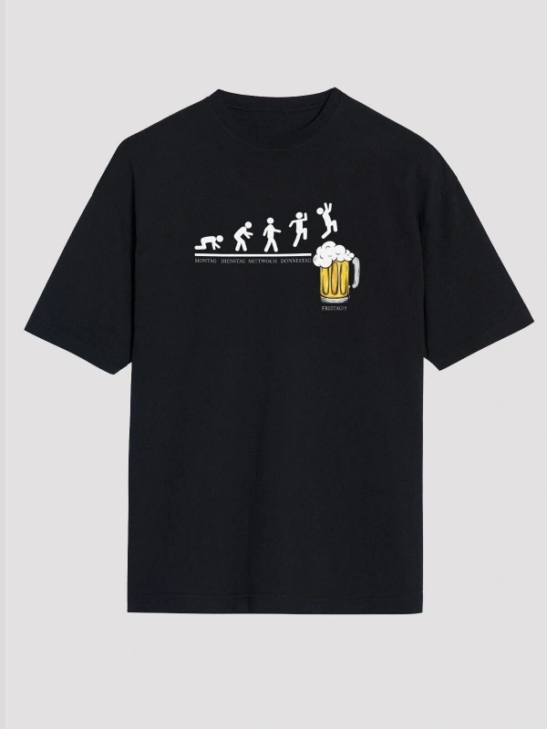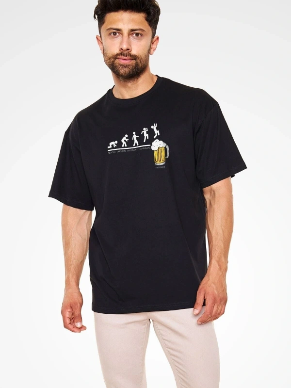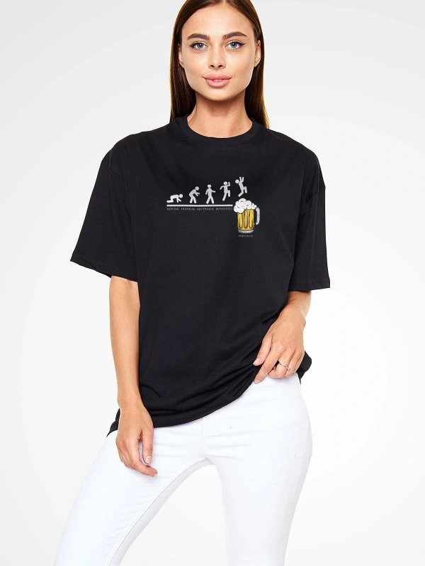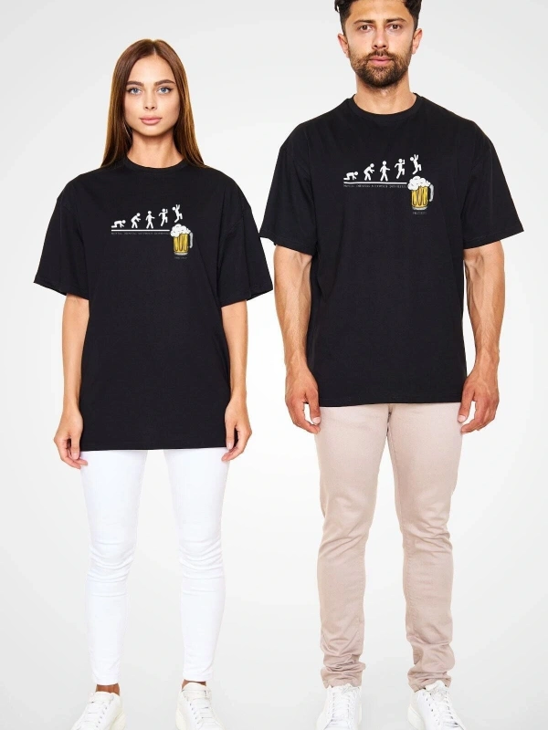 Ko Buta Bira Evrimi Baskılı Unisex Oversize Tişört - Tshirt Os20103