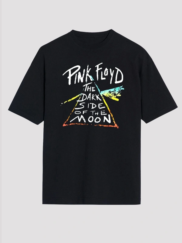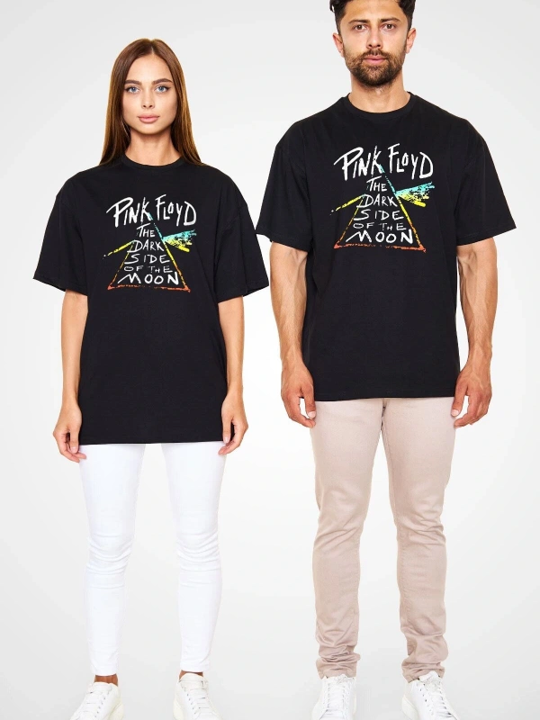 Ko Buta Pink Floyd Baskılı Unisex Siyah Oversize T-shirt Os2826