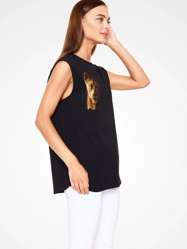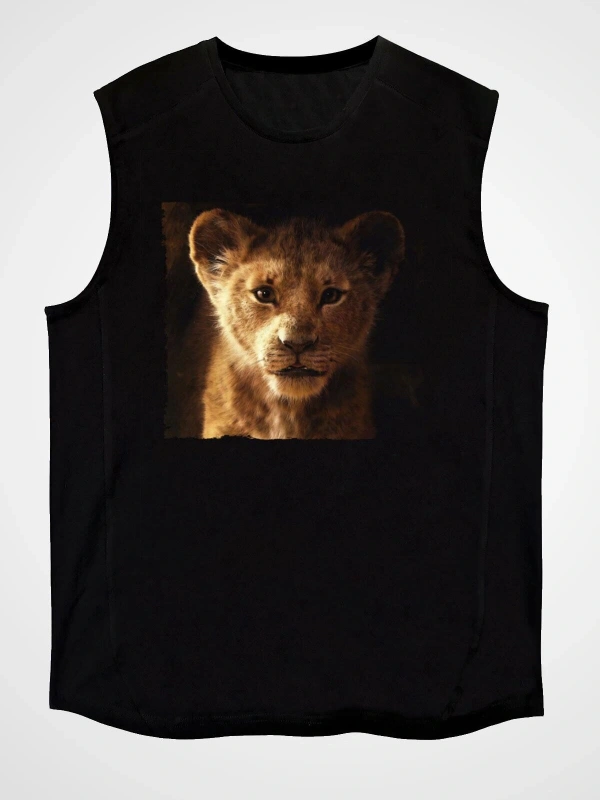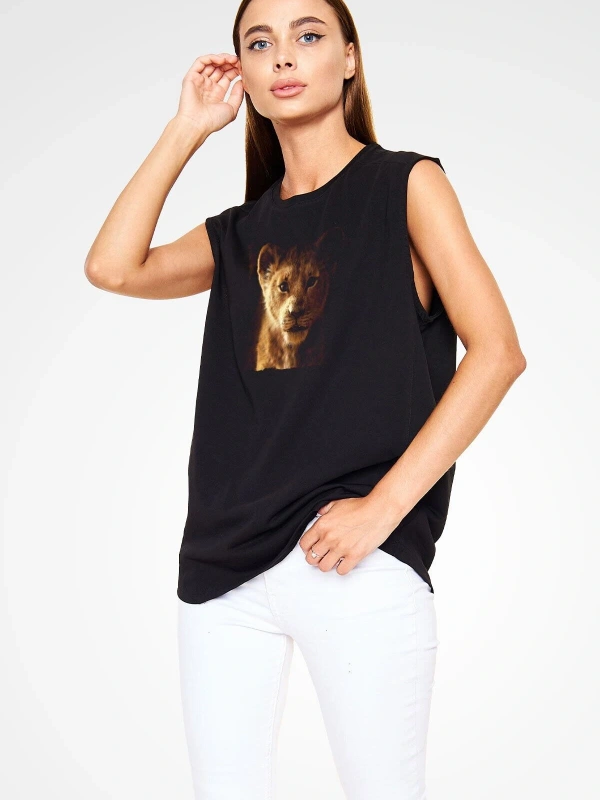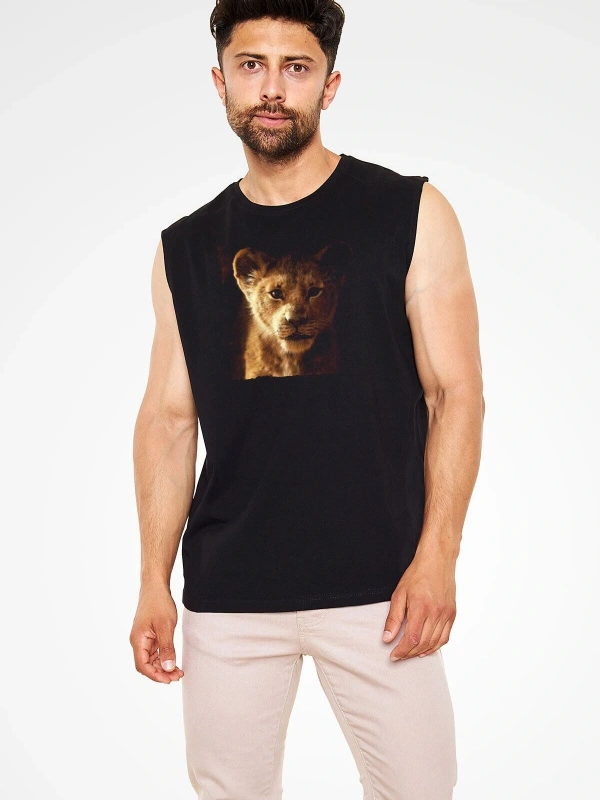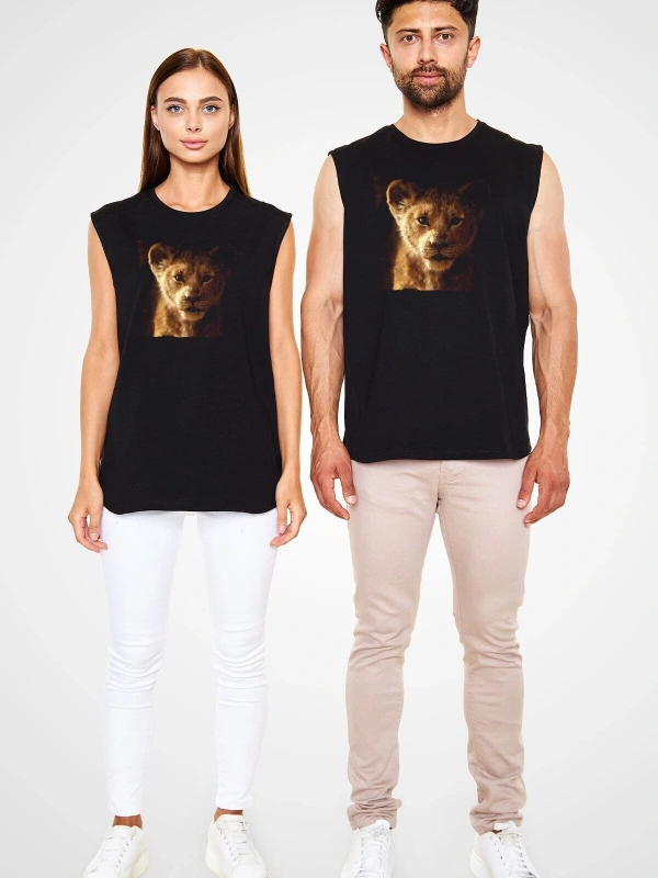 Ko Buta Unisex Aslan Kral Baskılı Siyah Kolsuz T-shirt Kk19383