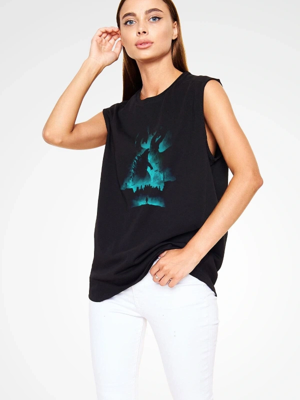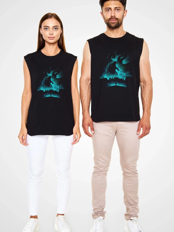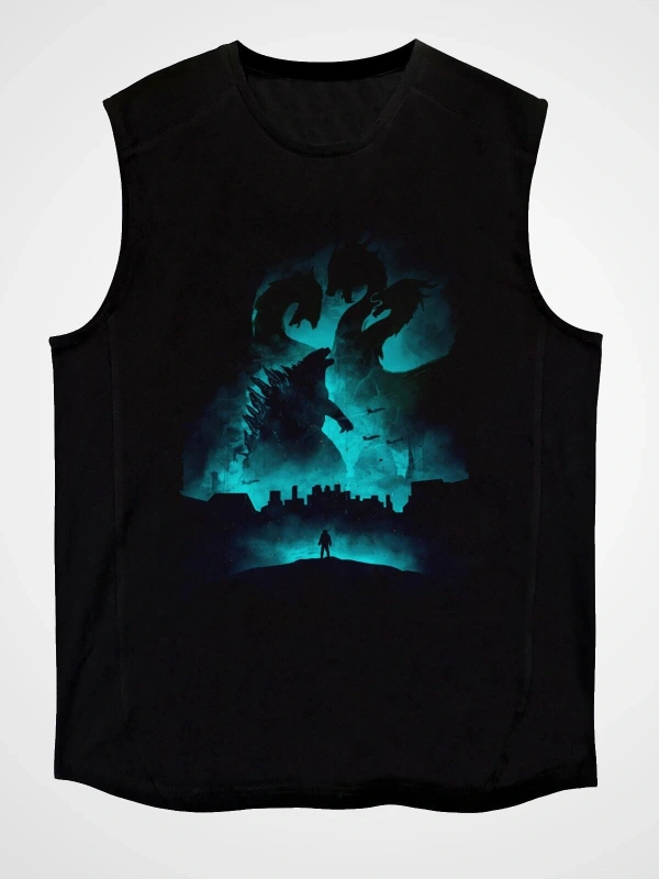 Ko Buta Unisex Godzilla Iı Canavarlar Kralı Baskılı Siyah Kolsuz T-shirt Kk19514