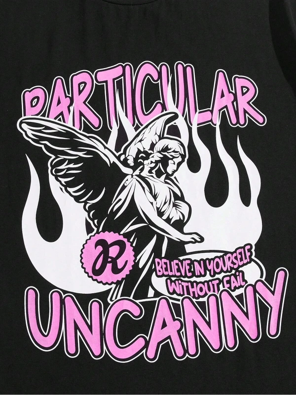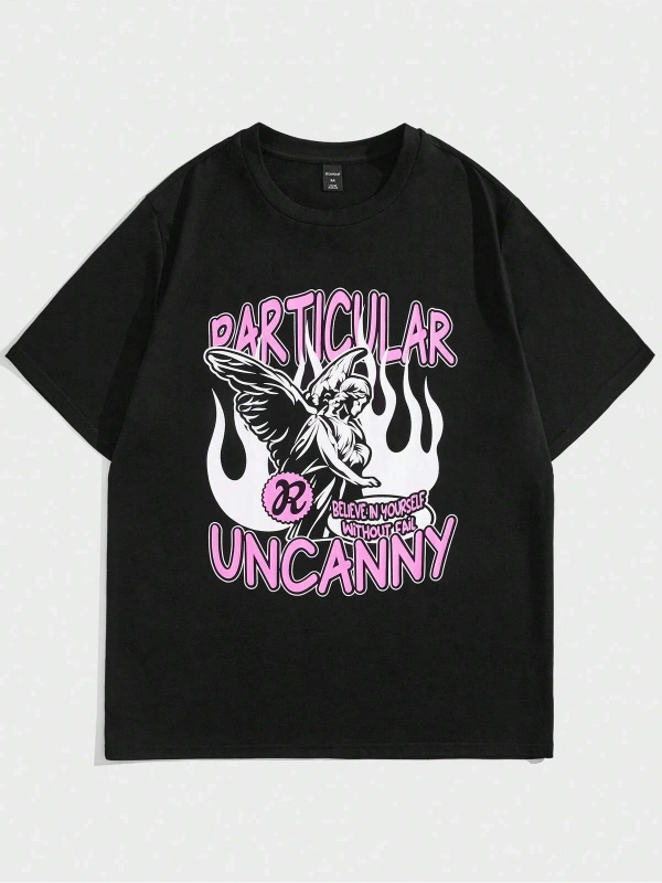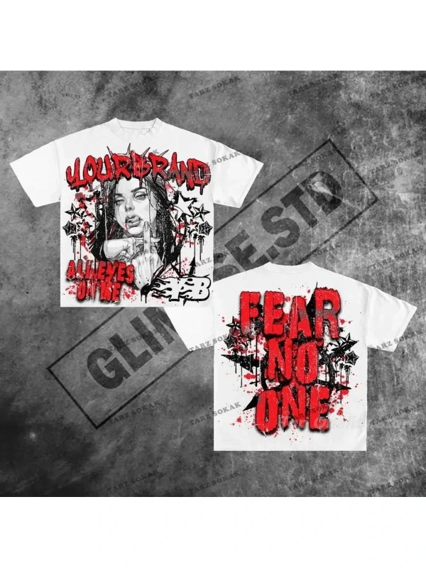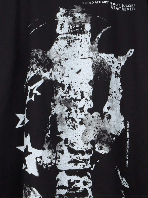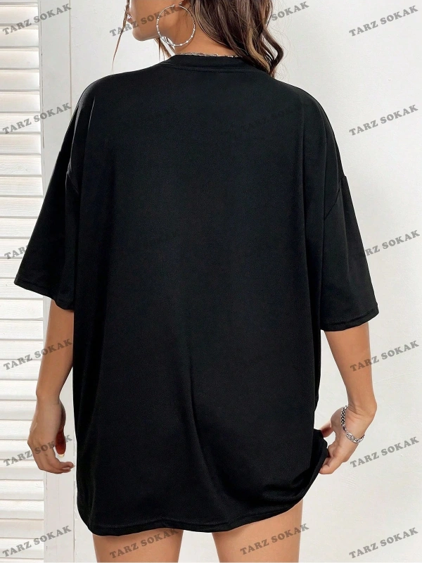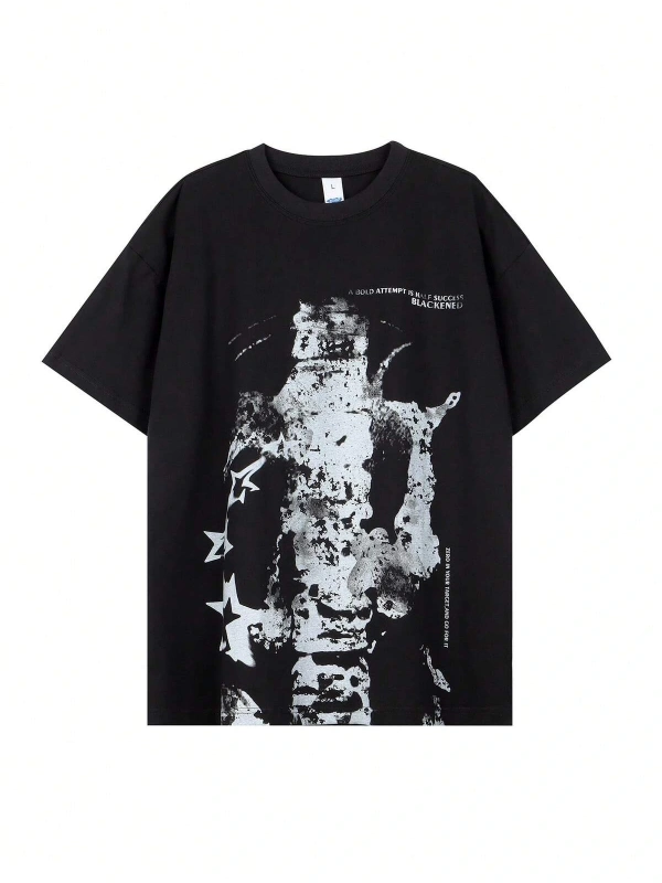 Unisex Oversize Kalıp Yıldız & Slogan Grafikli Harajuku Style