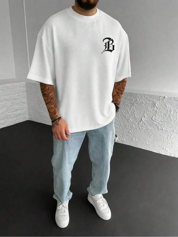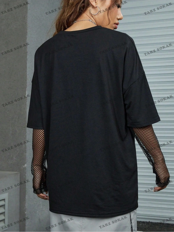 Unisex Oversize Kalıp Mektup Grafik Damla Omuz Harajuku Style
