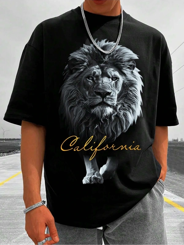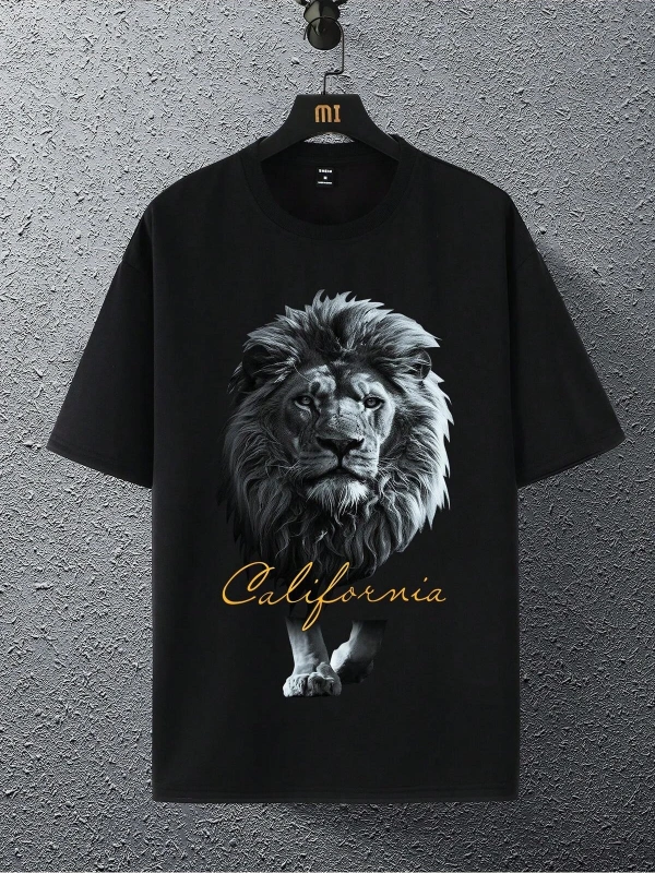 Unisex Oversize Kalıp Aslan & Harf Grafikli Harajuku Style