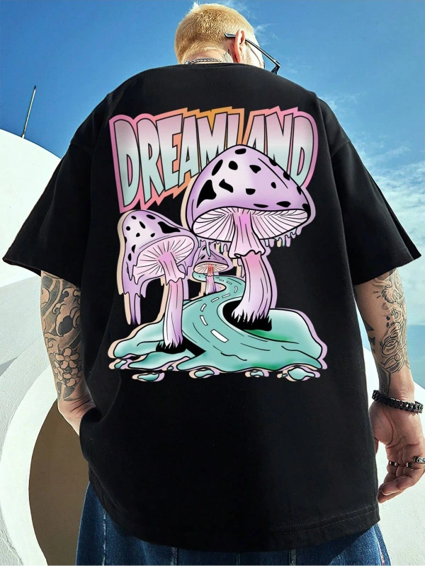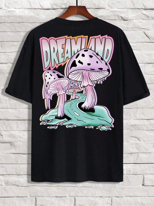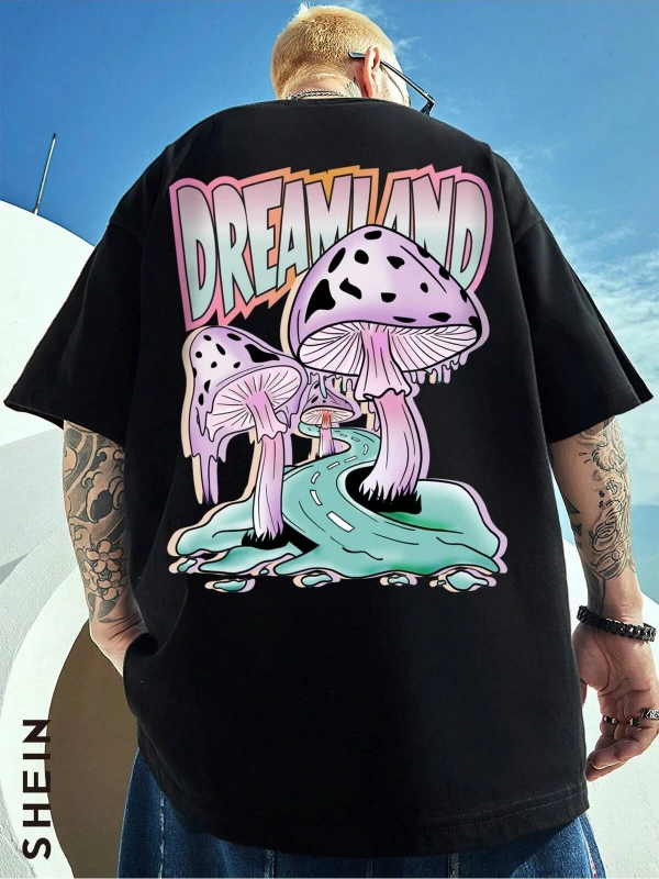 Unisex Oversize Kalıp Mantar ve Harf Grafikli Harajuku Style