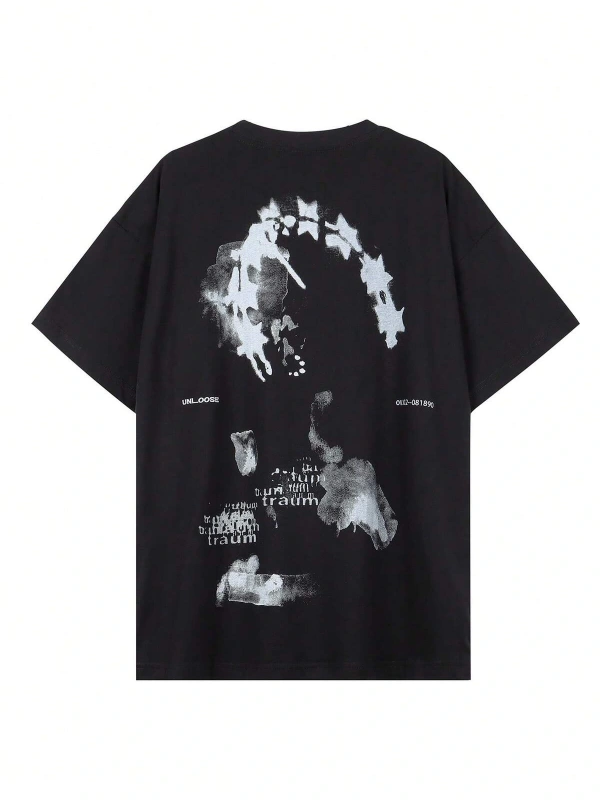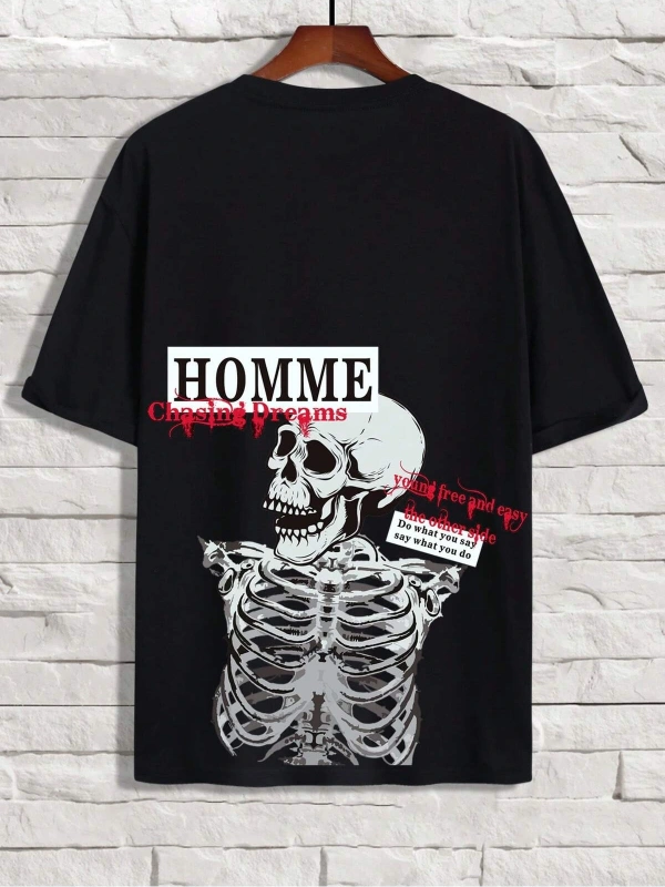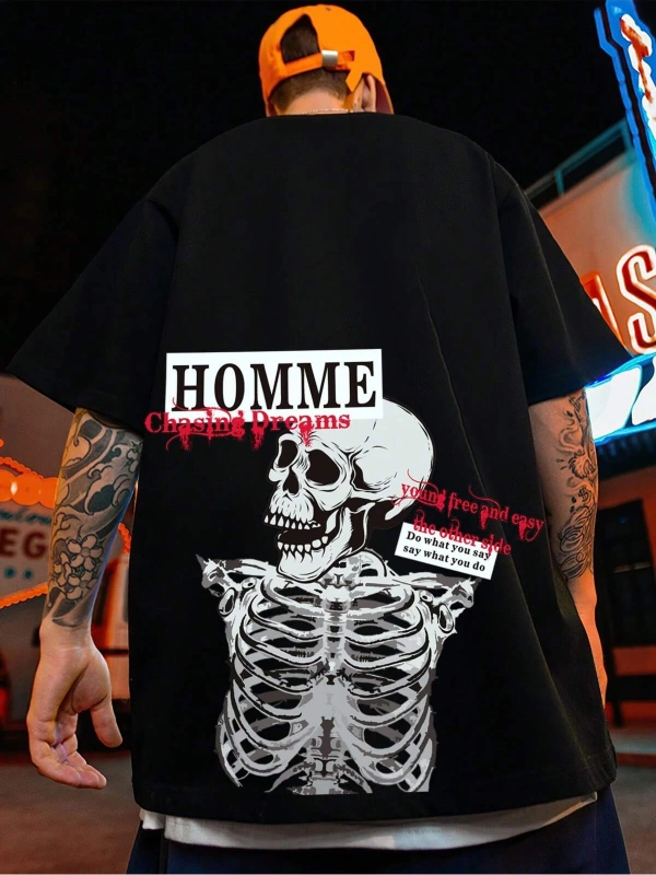 Unisex Oversize Kalıp Sloganlı ve İskelet Baskılı Harajuku Style