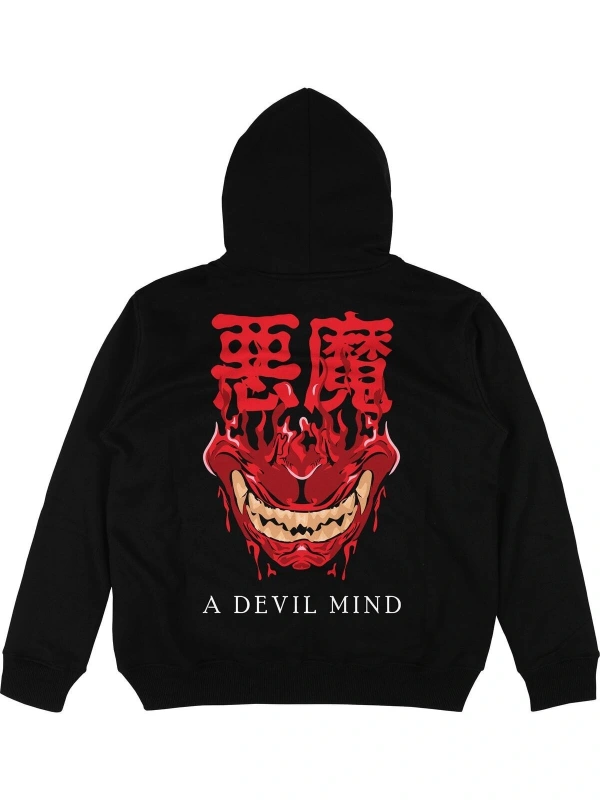 A Devil Mind Siyah Oversize Unisex Kapüşonlu Sweatshirt Hoodie