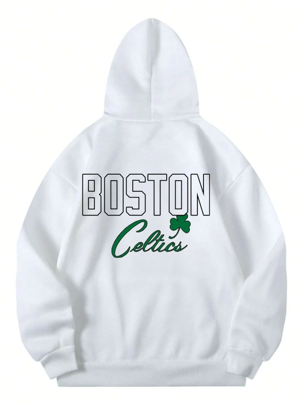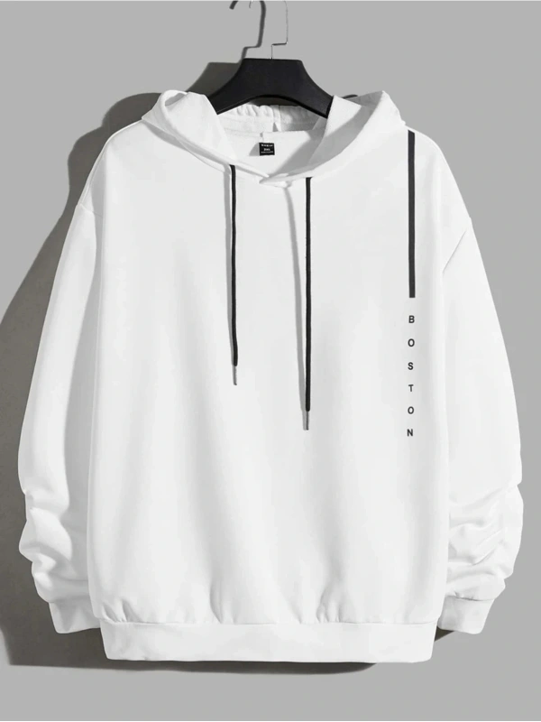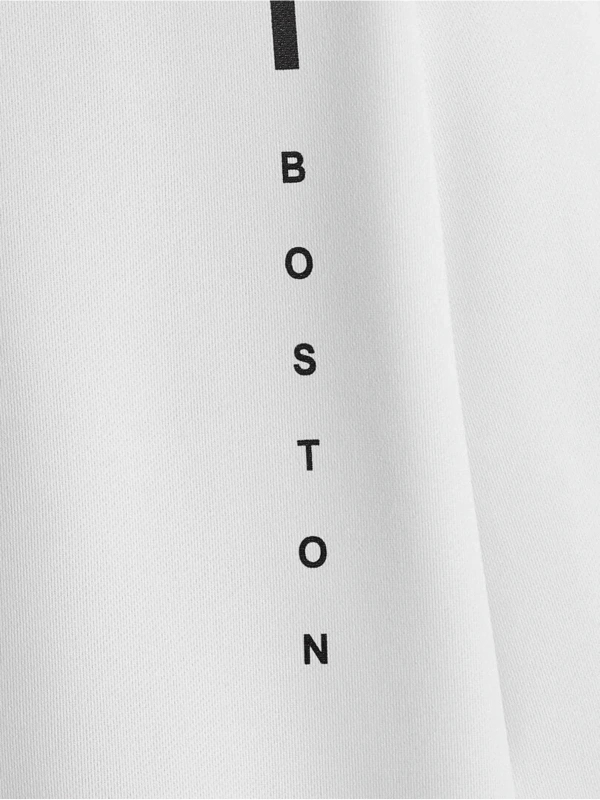 Boston Renkli Baskılı Oversize Kapüşonlu Sweatshirt Beyaz