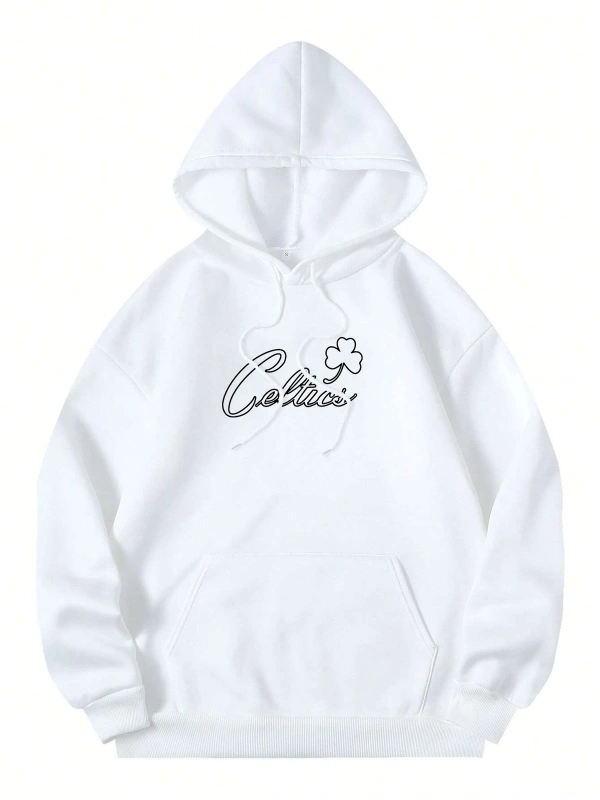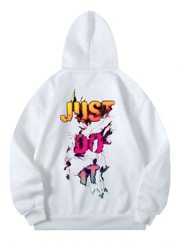Unisex Erkek/Kadın JUSTDOIT Renkli Özel Baskılı Oversize Kapüşonlu Sweatshirt Beyaz