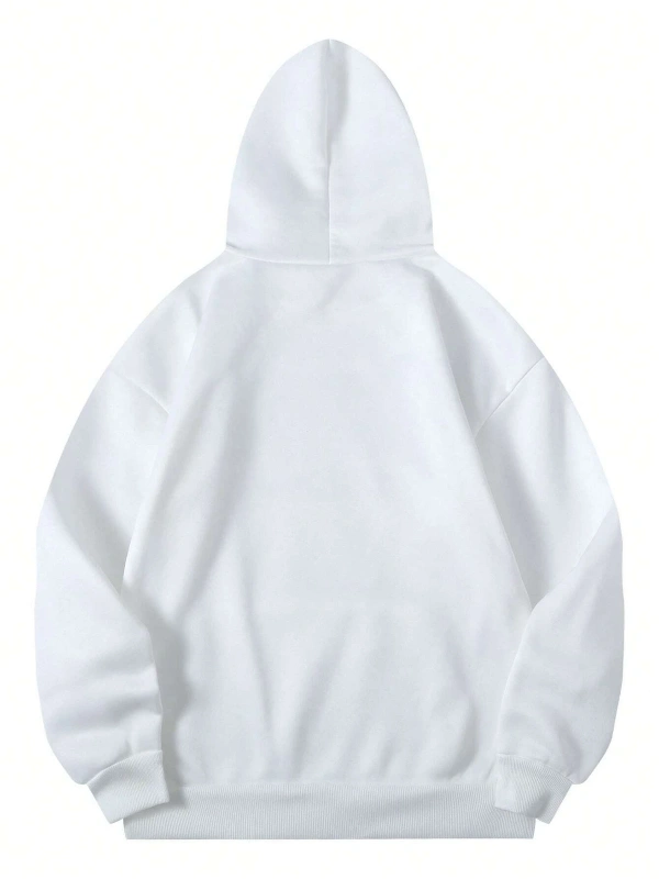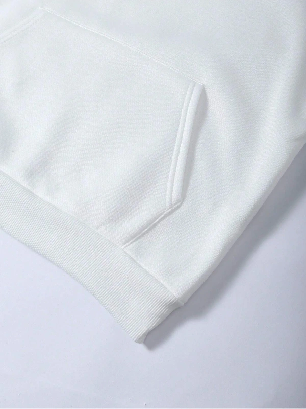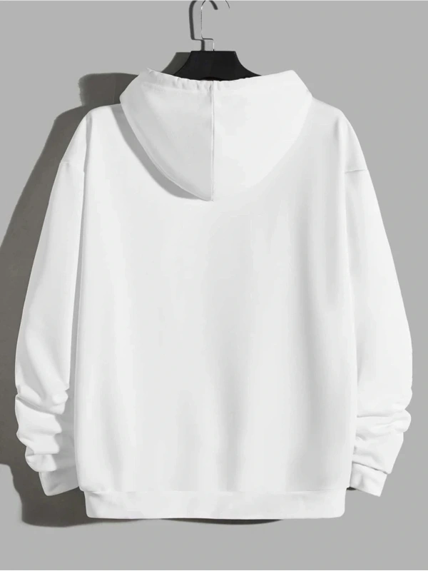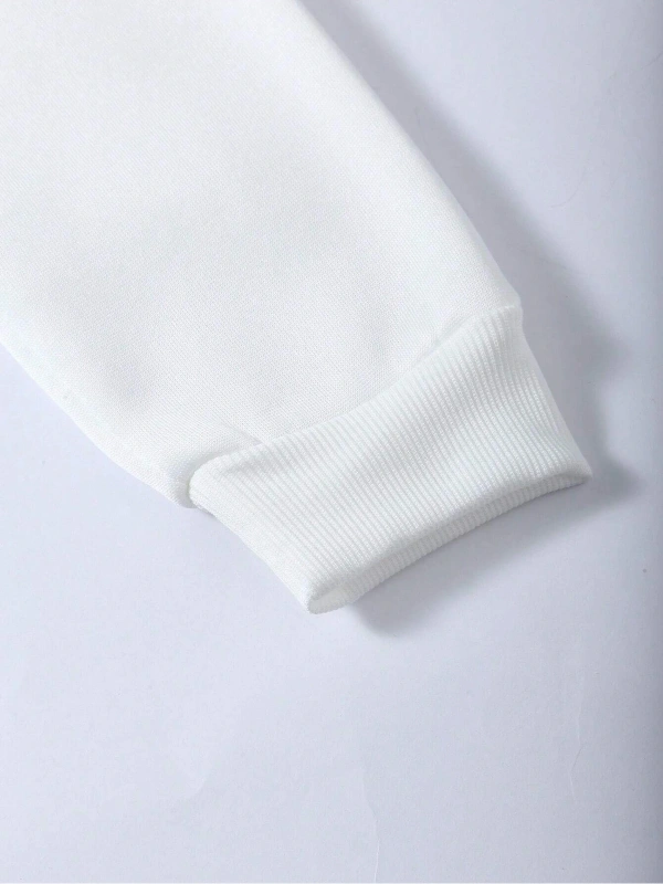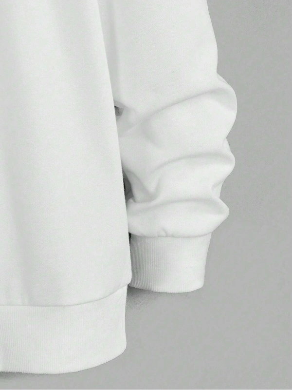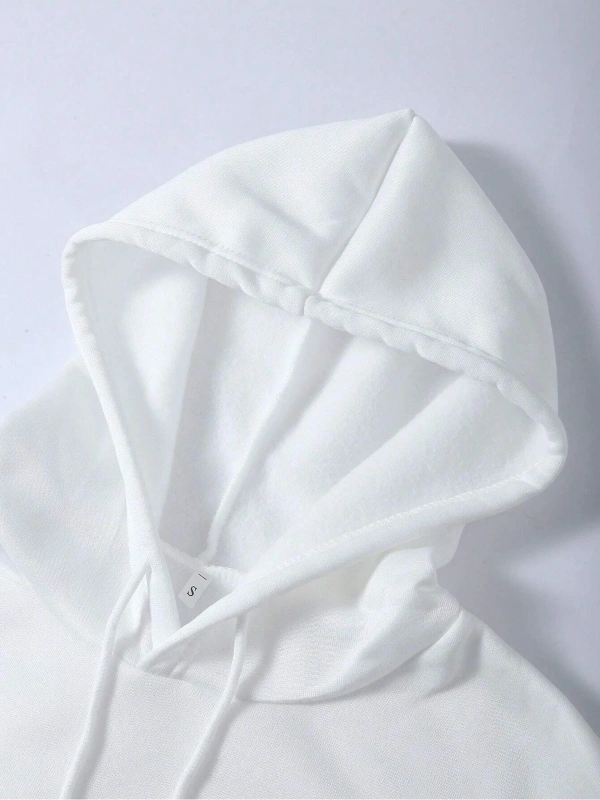 DÜZ Renkli Baskılı Oversize Kapüşonlu Sweatshirt Beyaz