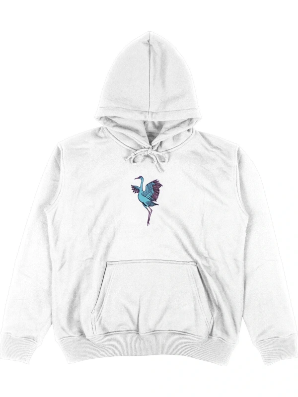 Crane Beyaz Oversize Unisex Kapüşonlu Sweatshirt Hoodie