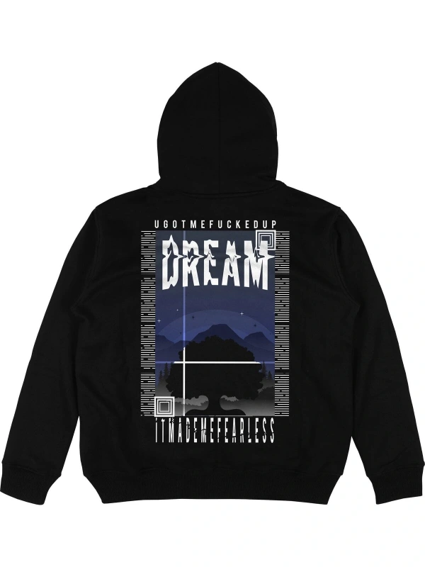 Dream Siyah Oversize Unisex Kapüşonlu Sweatshirt Hoodie