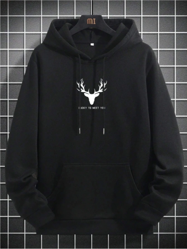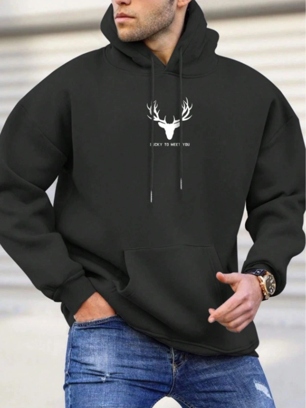 Geyik Renkli Oversize Kapüşonlu Sweatshirt Siyah