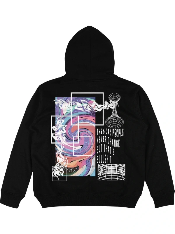 Never Change Siyah Oversize Unisex Kapüşonlu Sweatshirt Hoodie