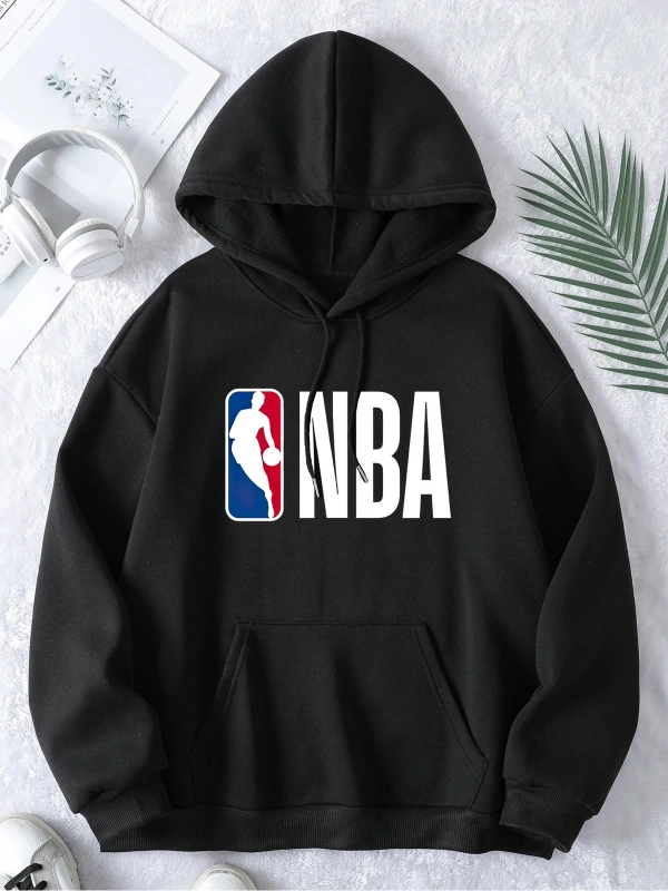 Unisex Erkek/Kadın BASKET Renkli Özel Baskılı Oversize Kapüşonlu Sweatshirt Siyah