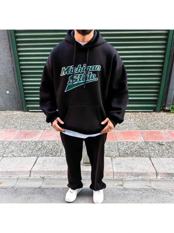 Unisex Erkek/Kadın MİCHİGAN Renkli Özel Baskılı Oversize Kapüşonlu Sweatshirt Siyah