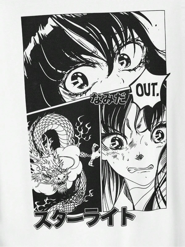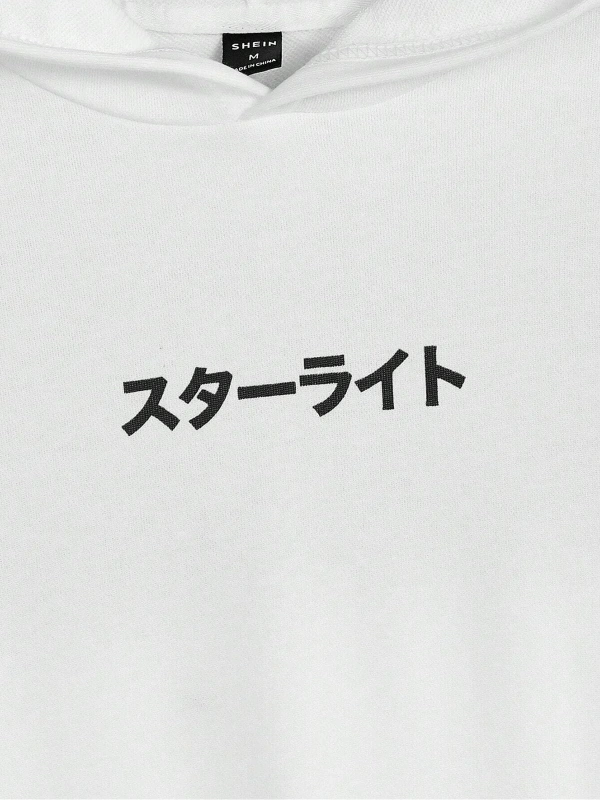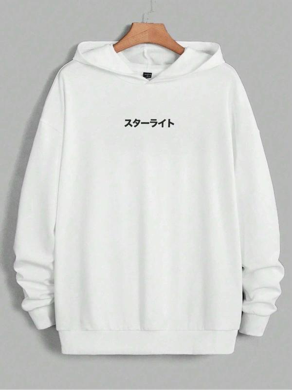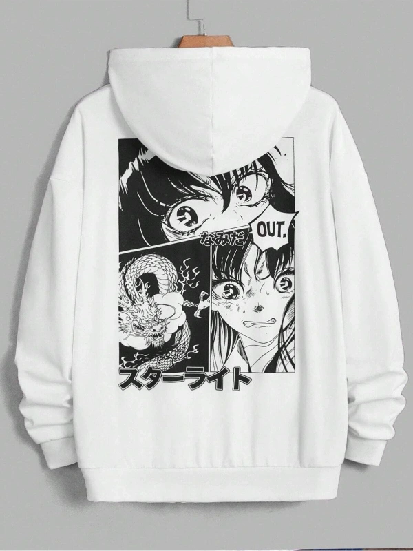 Unisex Kadın/Erkek Beyaz Anime Out Baskılı Oversize Kapüşonlu Sweatshirt
