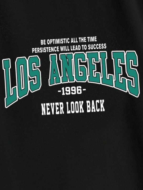 Unisex Kadın/Erkek Siyah Los Angeles 1996 Baskılı Oversize Kapüşonlu Sweatshirt