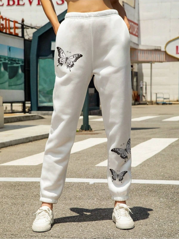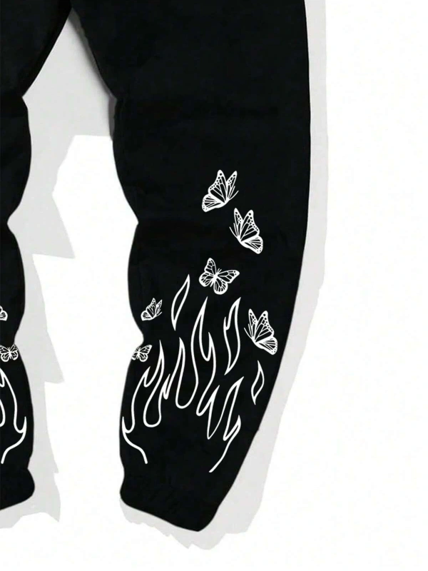 Butterfly Print Elastic Waist 4 Mevsim Eşofman