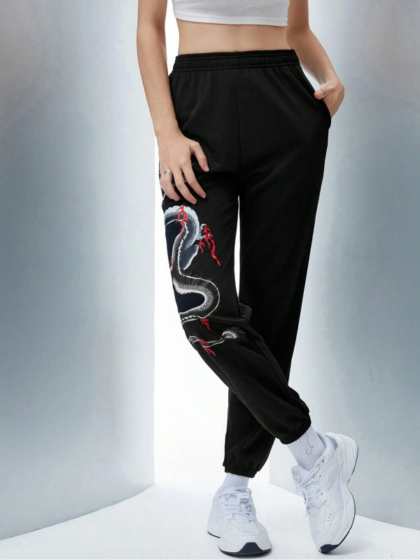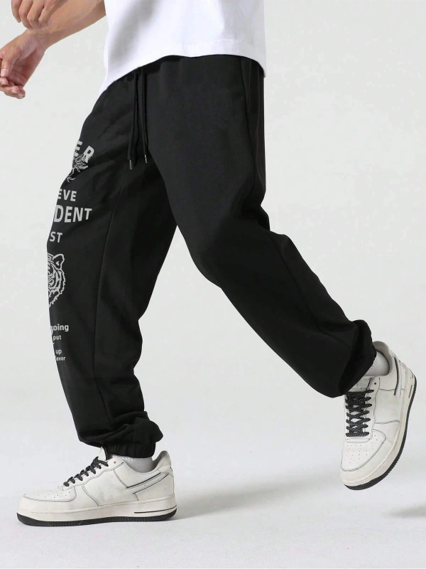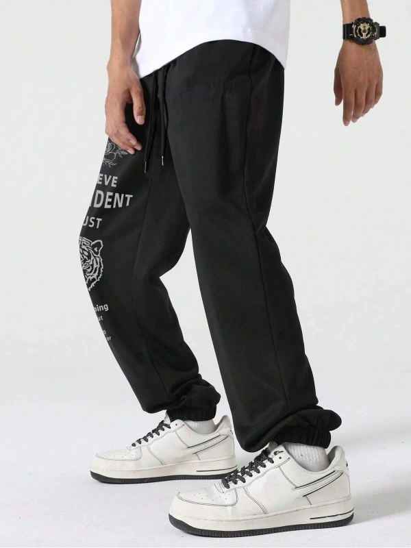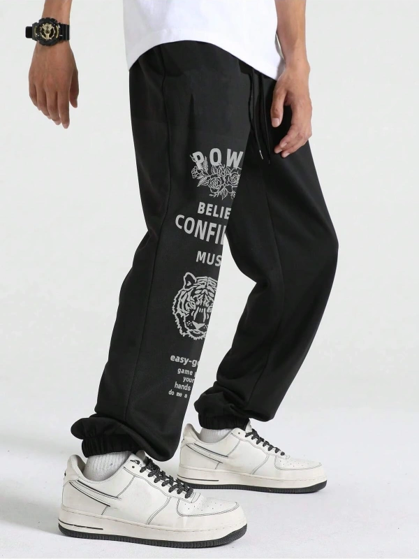 Hypemode Letter Tiger & Floral Graphic Drawstring Waist Eşofman Altı