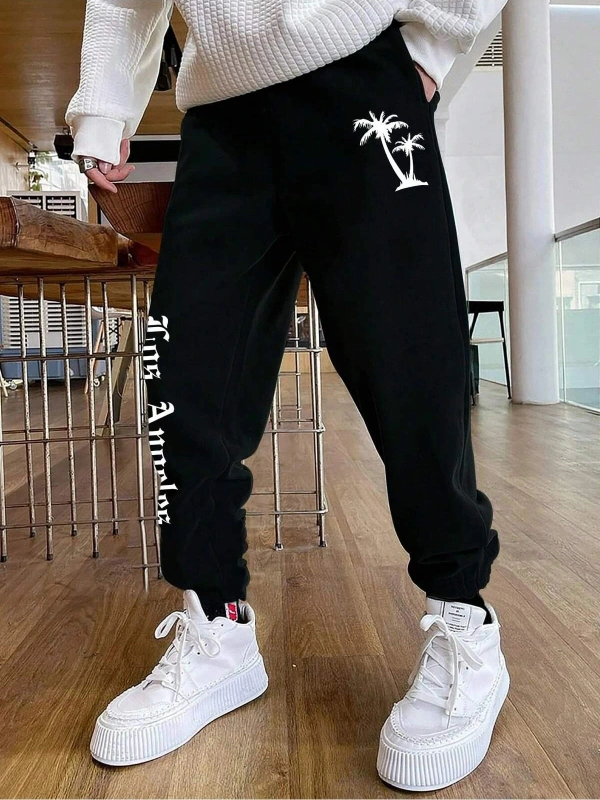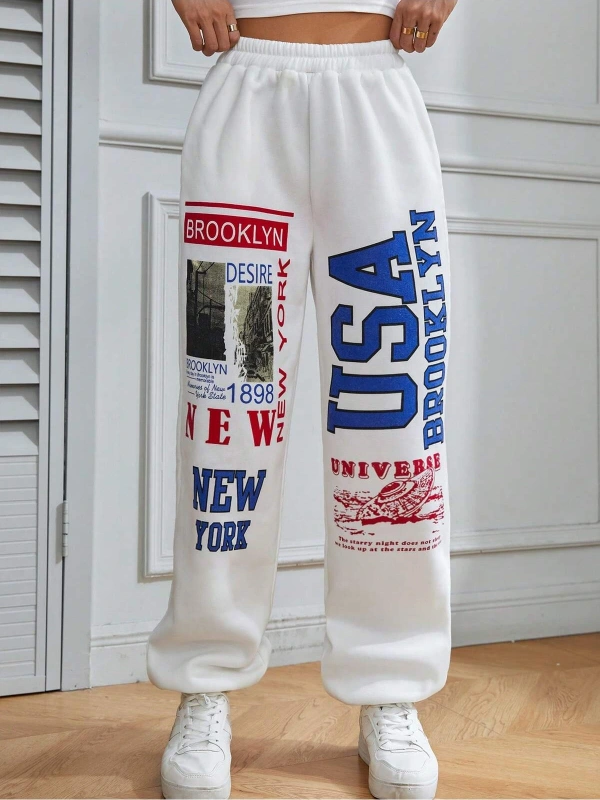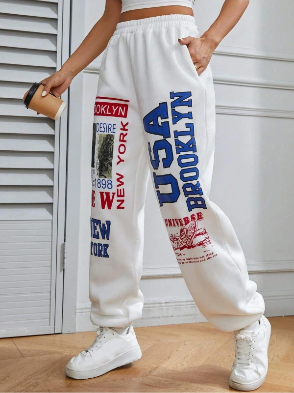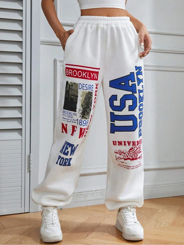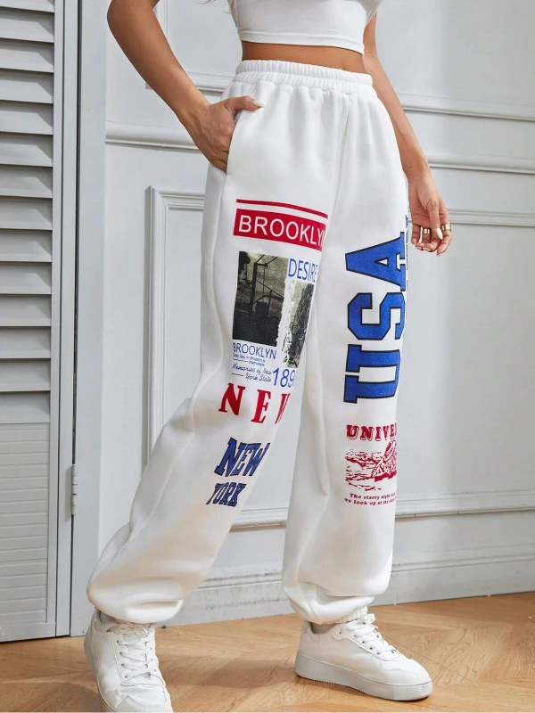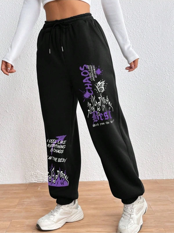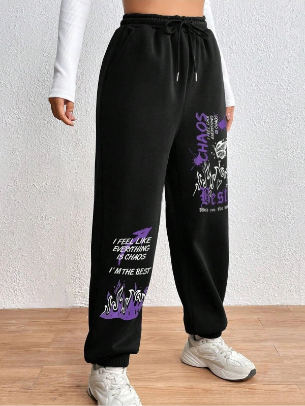 Graphic Drawstring Waist 4 Mevsim Eşofman