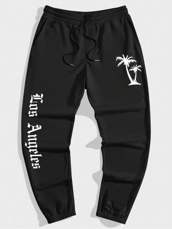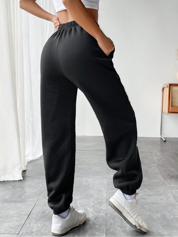 Letter Graphic Drawstring Waist 4 Mevsim Eşofman