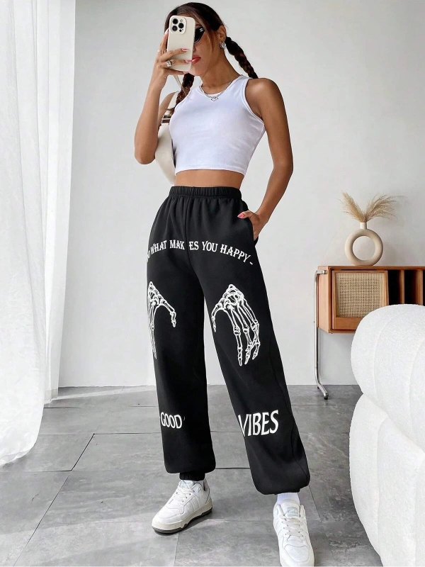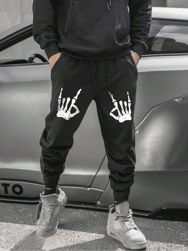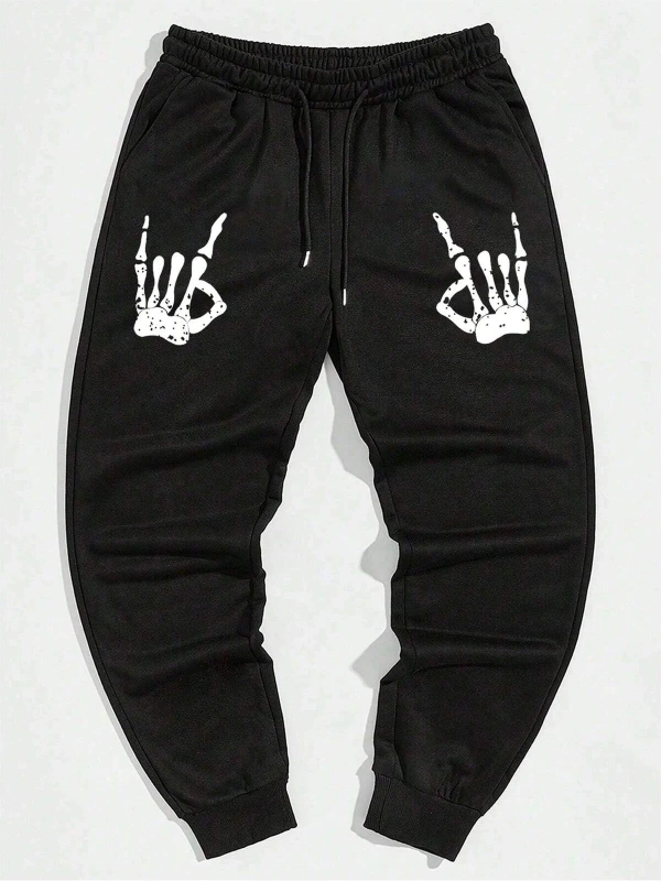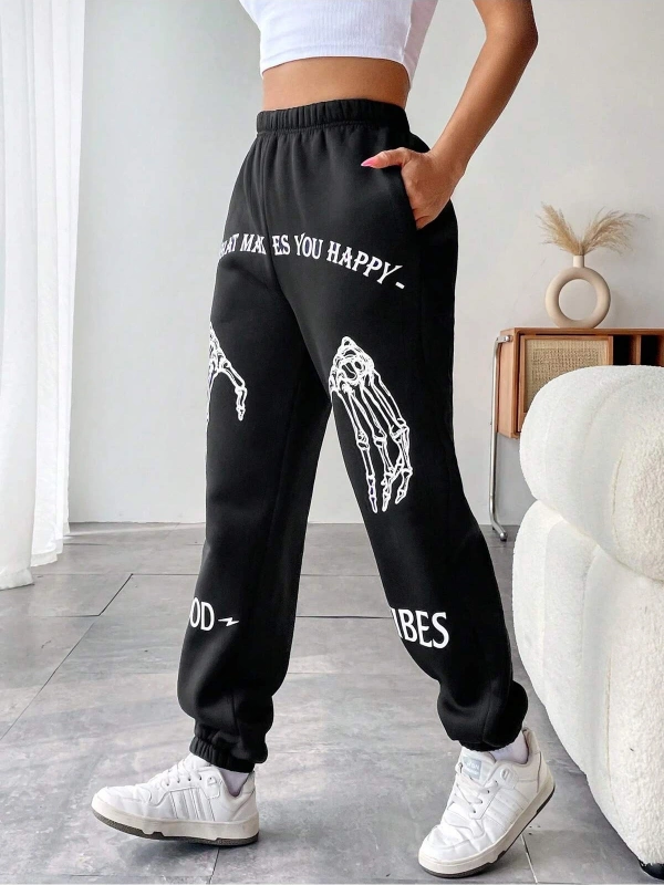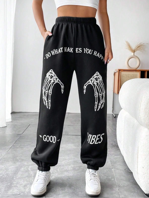 Coolane Skeleton Hand & Letter Graphic Elastic Waist 4 Mevsim Eşofman