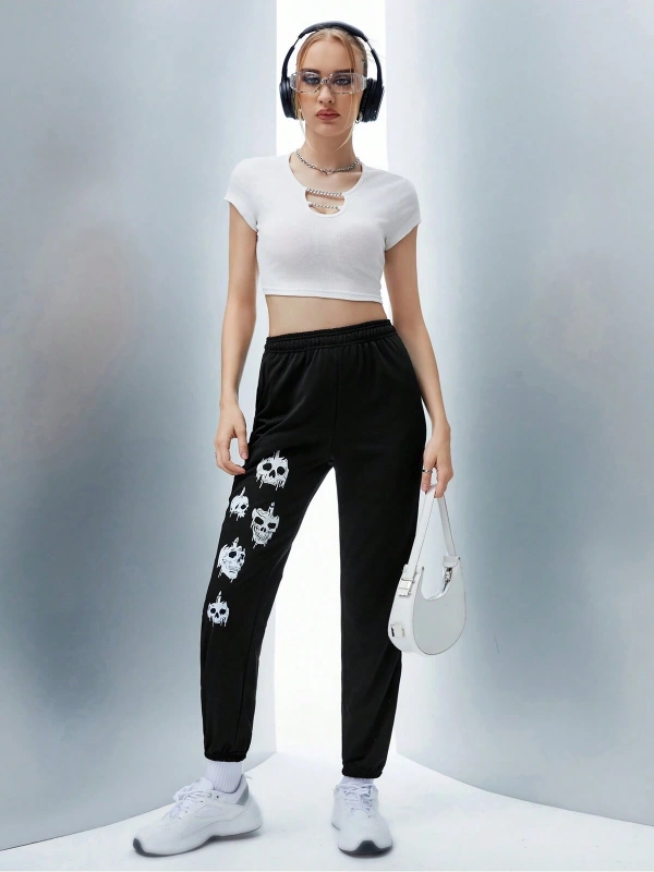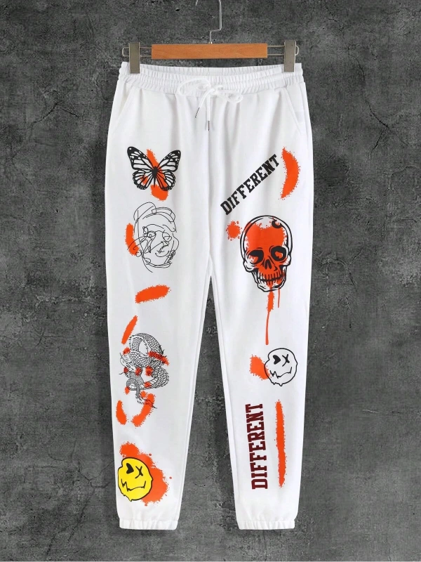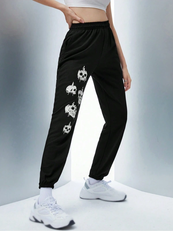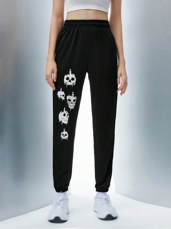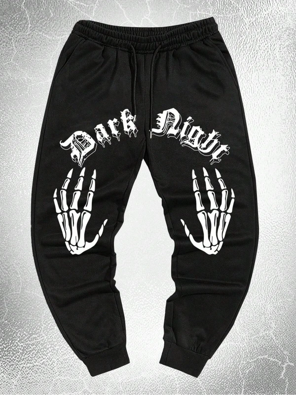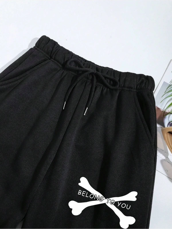 Skull Letter Graphic Drawstring Waist Eşofman Altı