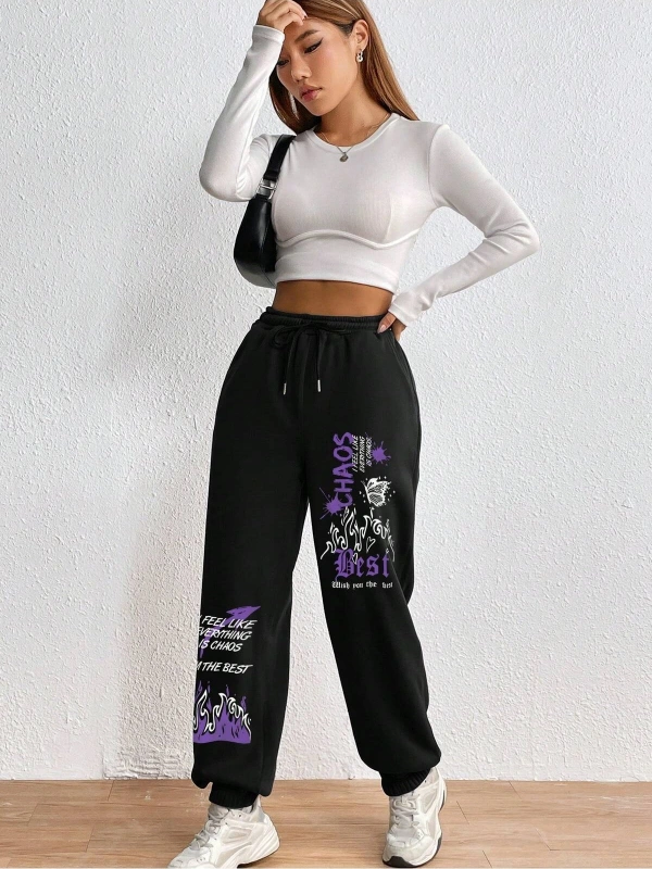 Hypemode Letter Graphic Drawstring Waist Eşofman Altı