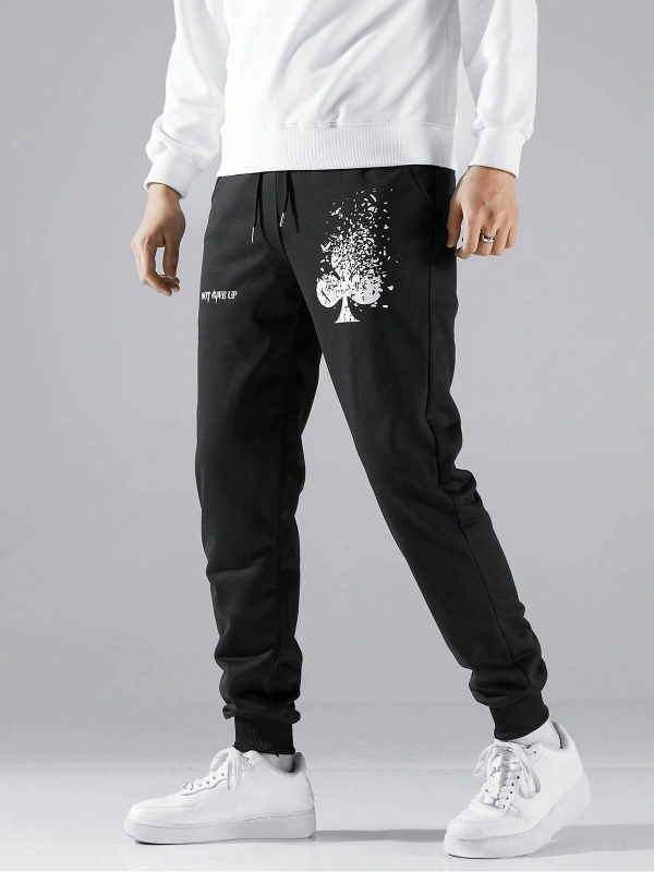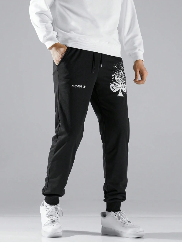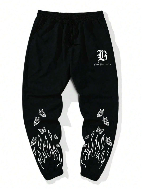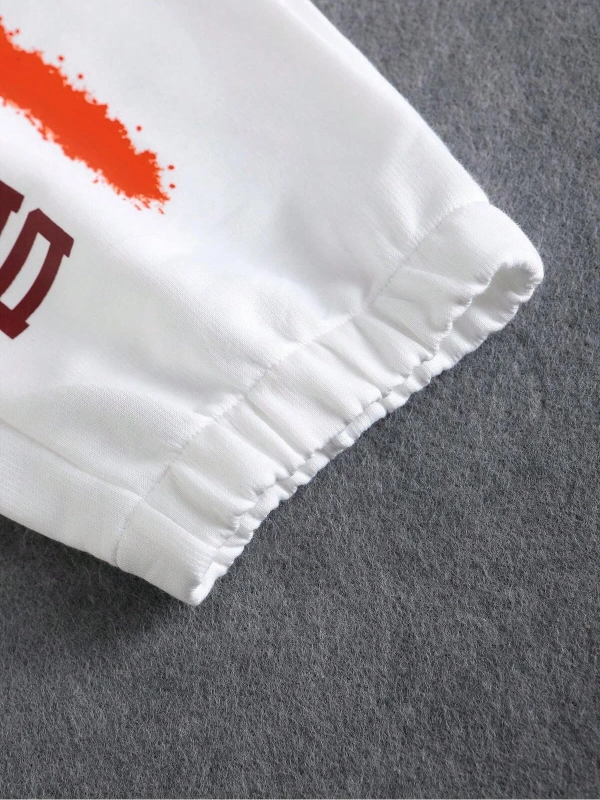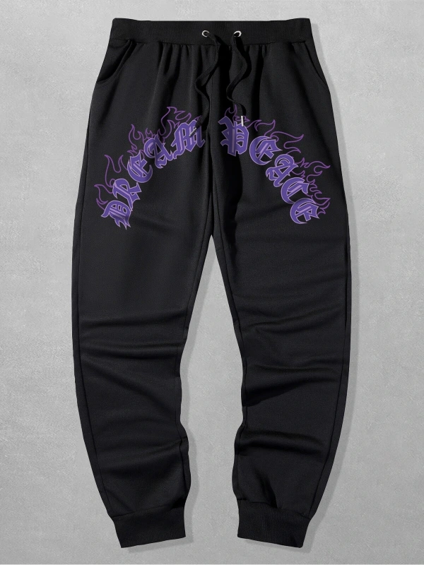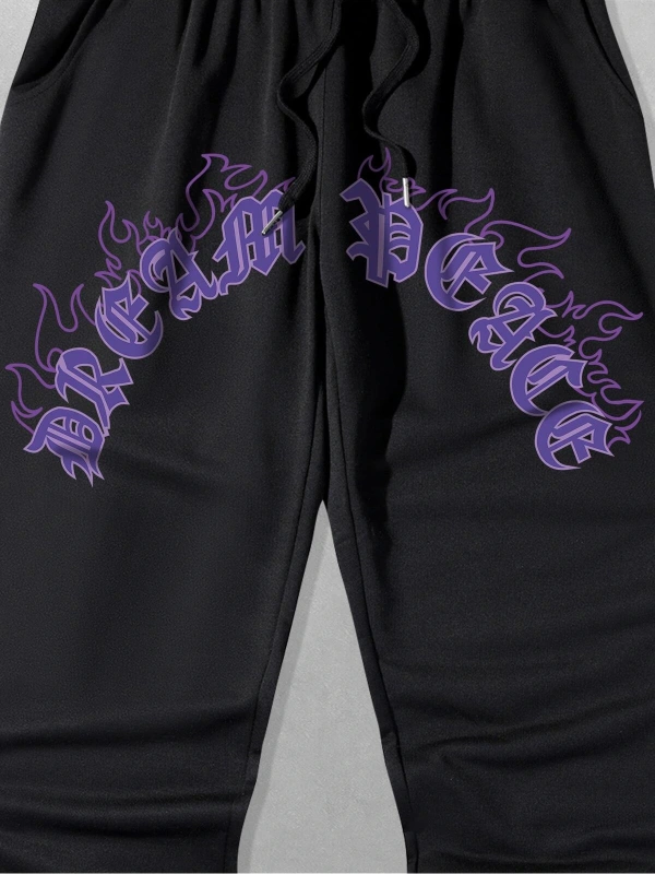 Letter & Fire Print Drawstring Waist Eşofman Altı