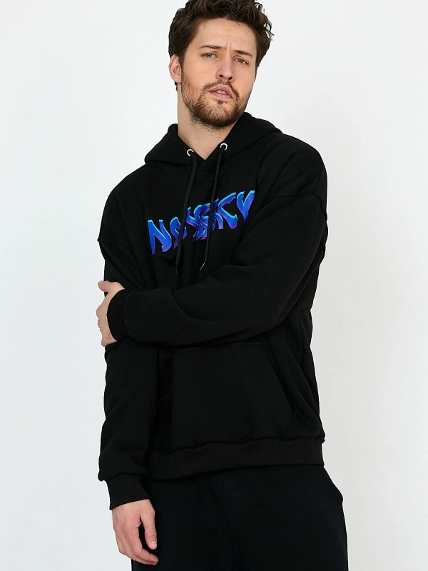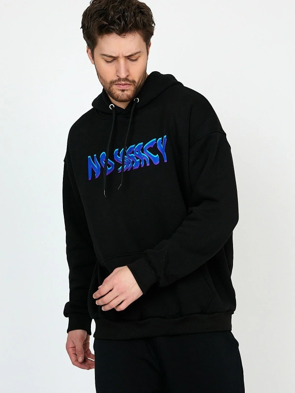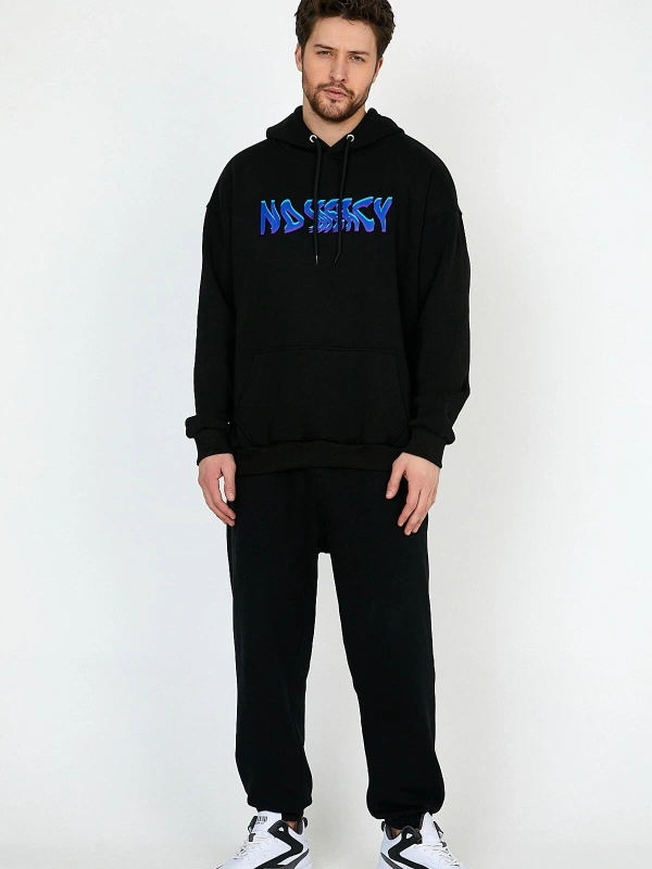 Electro Siyah Oversize Unisex Kapüşonlu Sweatshirt Hoodie