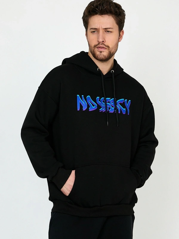 No Mercy Siyah Oversize Unisex Kapüşonlu Sweatshirt Hoodie