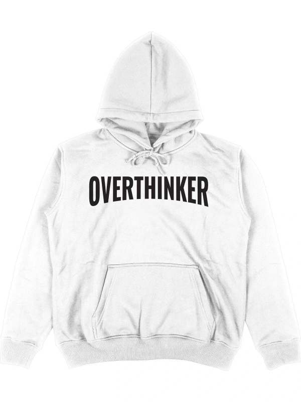 Overthinker Beyaz Oversize Unisex Kapüşonlu Sweatshirt Hoodie
