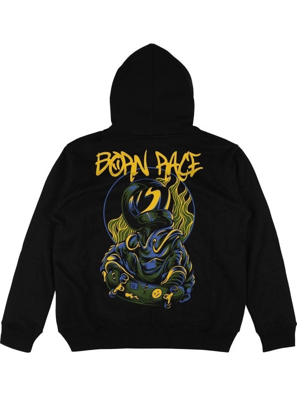Born Race Siyah Oversize Unisex Kapüşonlu Sweatshirt Hoodie